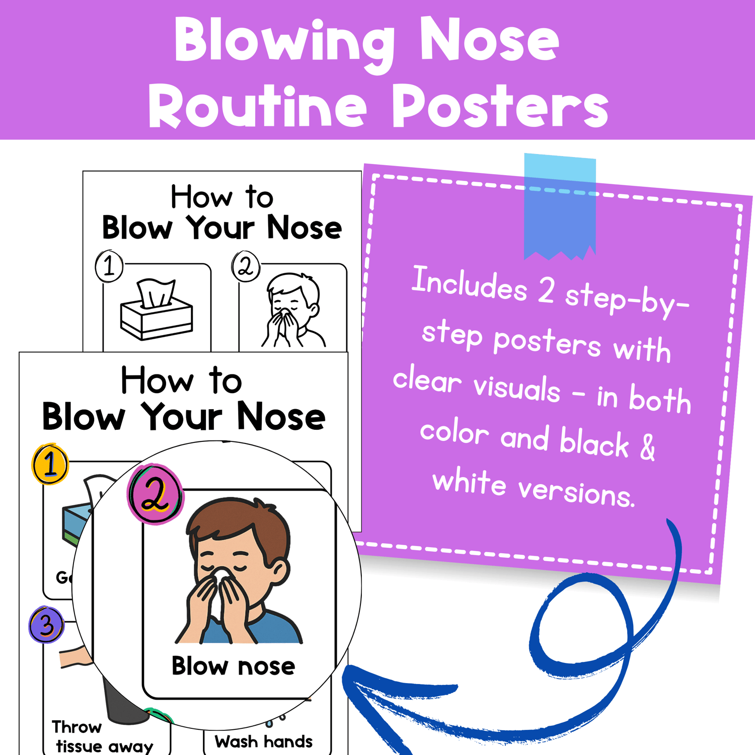 Blowing Nose Routine Visual Hygiene Posters & Teaching Slides