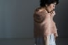 The shawl starts at the center top and it’s shaped with increases: one increase at each top edge on every row and one increase before and after the 3-stitch garter center panel on every right side row. The main textured fabric is designed with columns of crossed stitches. This soft texture is crossed by three elongation stripes (formed by long stitches). The twisted stitches and triangles of the border finish the shawl in such a lovely way.