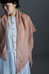 ショールは長辺の中心から編み始め, 増目しながら形成していく; 毎段ご とに両側の端編みの内側での増目1回, RS段ごとにセンターパネルのガー ター編み3目の前後での増目1回を行う. メインの編み地は交差編みの柱で デザインされている. このソフトな編み地には3本のドロップスステッチの ストライプ (針に糸を2重にかけるドライブ編み)が横切っている. ねじり 目と端編みの三角形模様の縁編みでショールを終える.