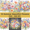 10 Summer Beautiful Flowers watercolor in PNG file size: 5000 x 5000 pixels in 300 DPI with transparent background.