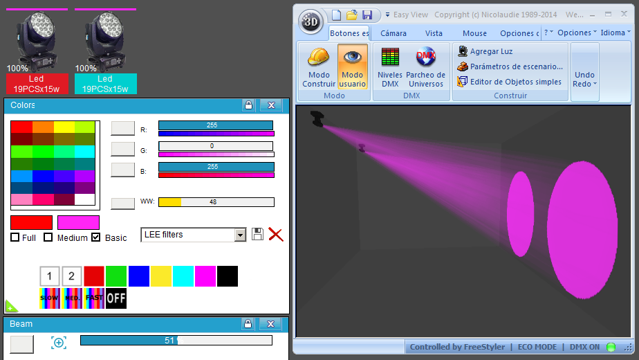 Esta Librería SSL2 está optimizada para trabajar con Magic 3d Easy View. Es decir para ver una representación 3D de las secuencias que estemos realizando con Freestyler, QLC+ o cualquier otro soft que se conecte con Magic 3d.