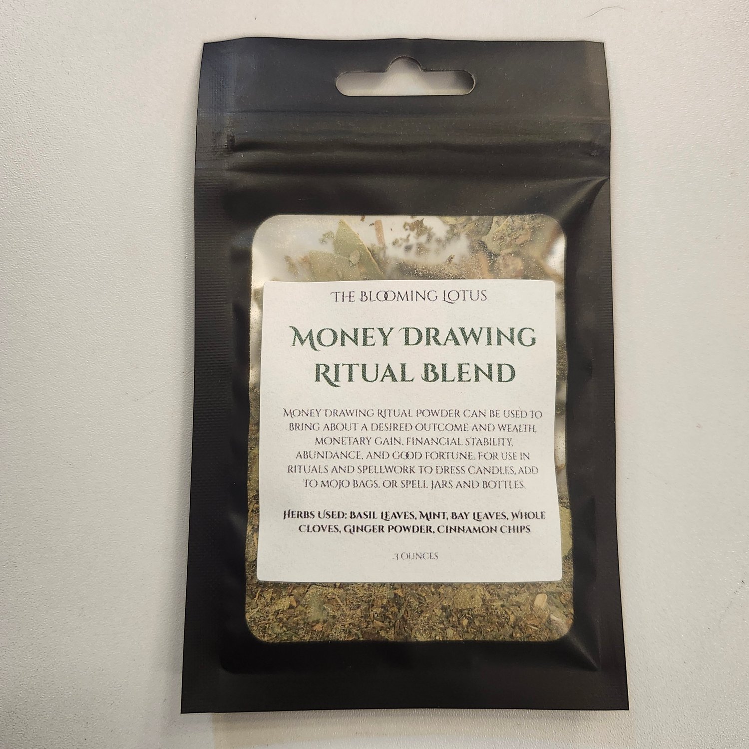 Our Money Drawing Ritual Blend is a carefully curated mix of time-honored prosperity herbs designed to support abundance, opportunity, and steady financial flow. Each batch is blended with focused intention to help you align your energy with wealth, success, and purposeful action.