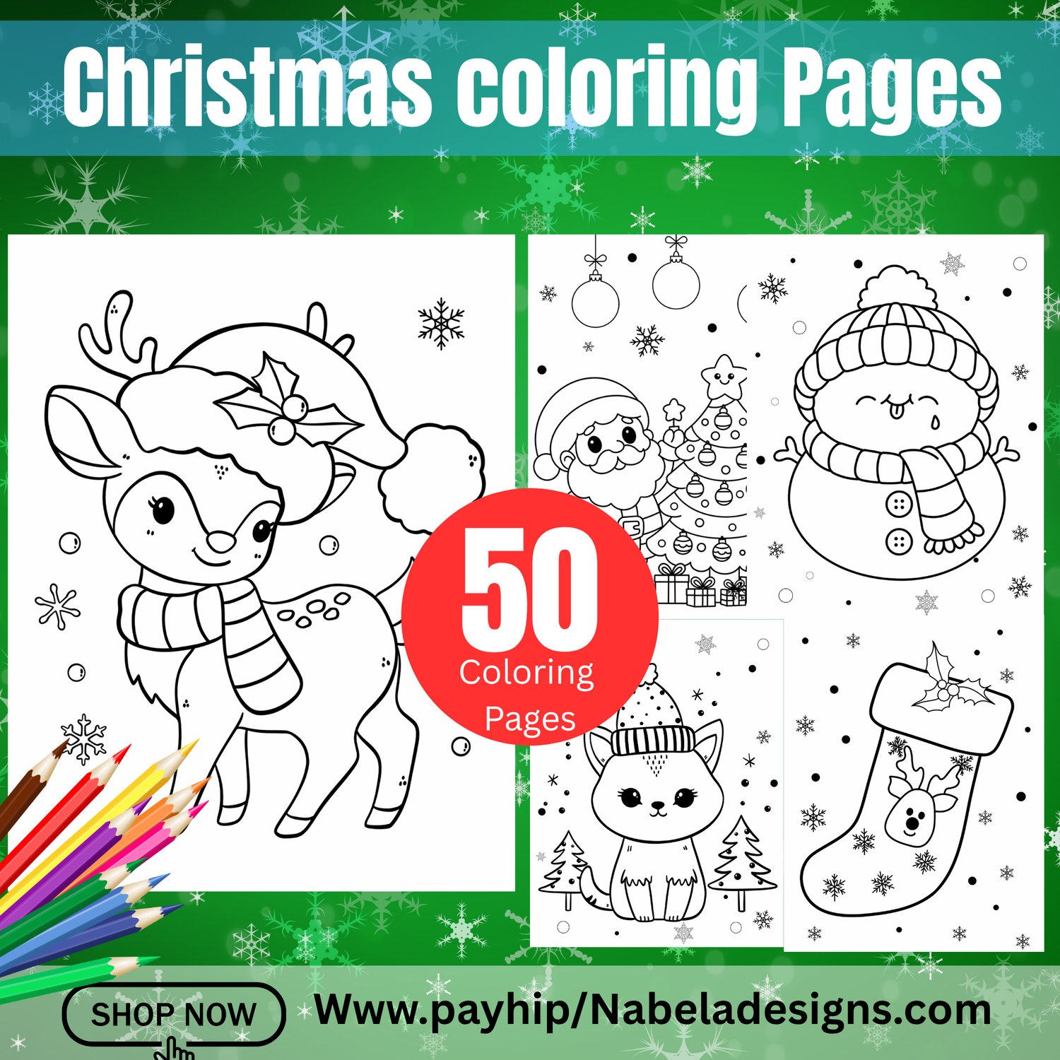 Celebrate the holiday season with this 50-page Christmas Coloring Pack, perfect for both kids! 🎅❄️