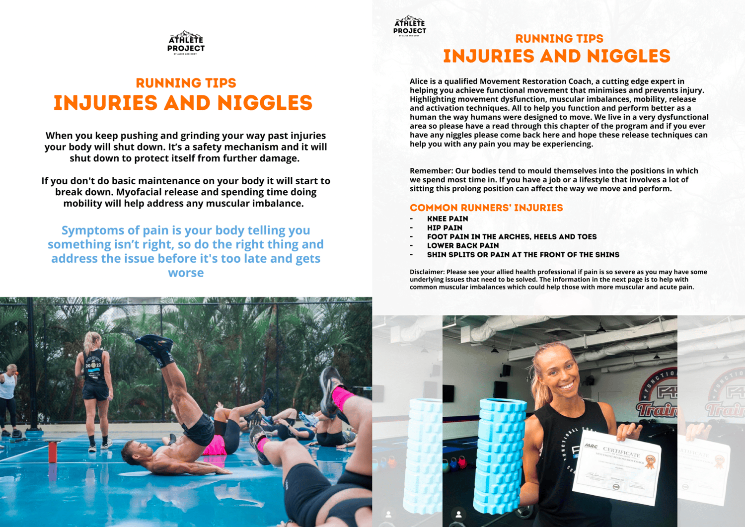 - Proper running form, teaching you the correct and most efficient way to run, highlighting common movement dysfunctions, what to look out for and how to avoid it.