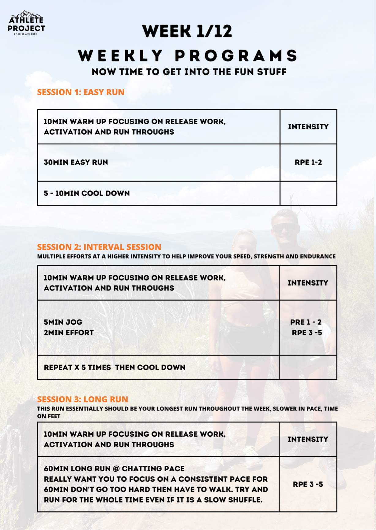 - 12 Week Running program with 38 running sessions