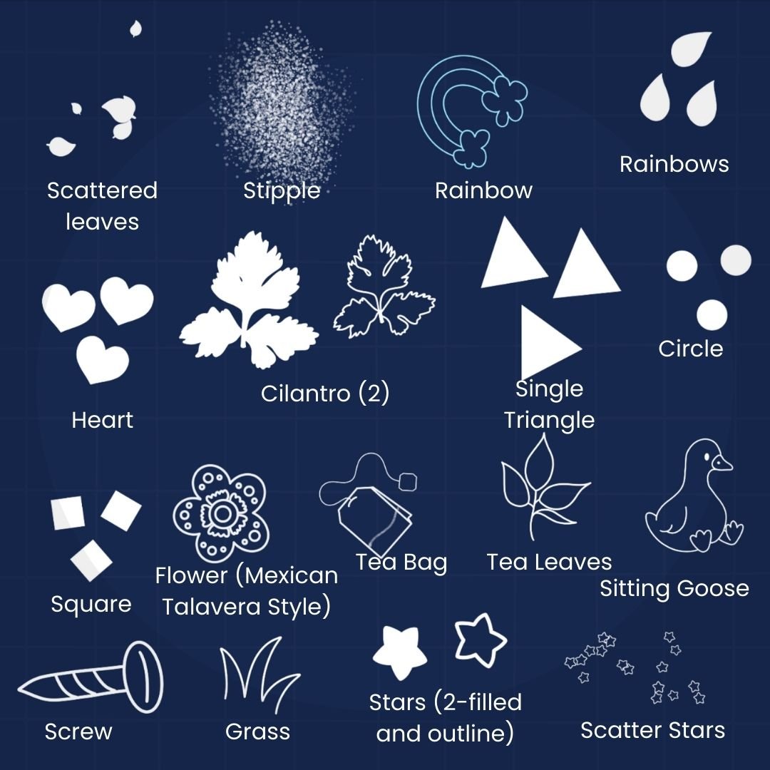 - 20+ cozy, hand-drawn stamp brushes (custom doodle shapes)