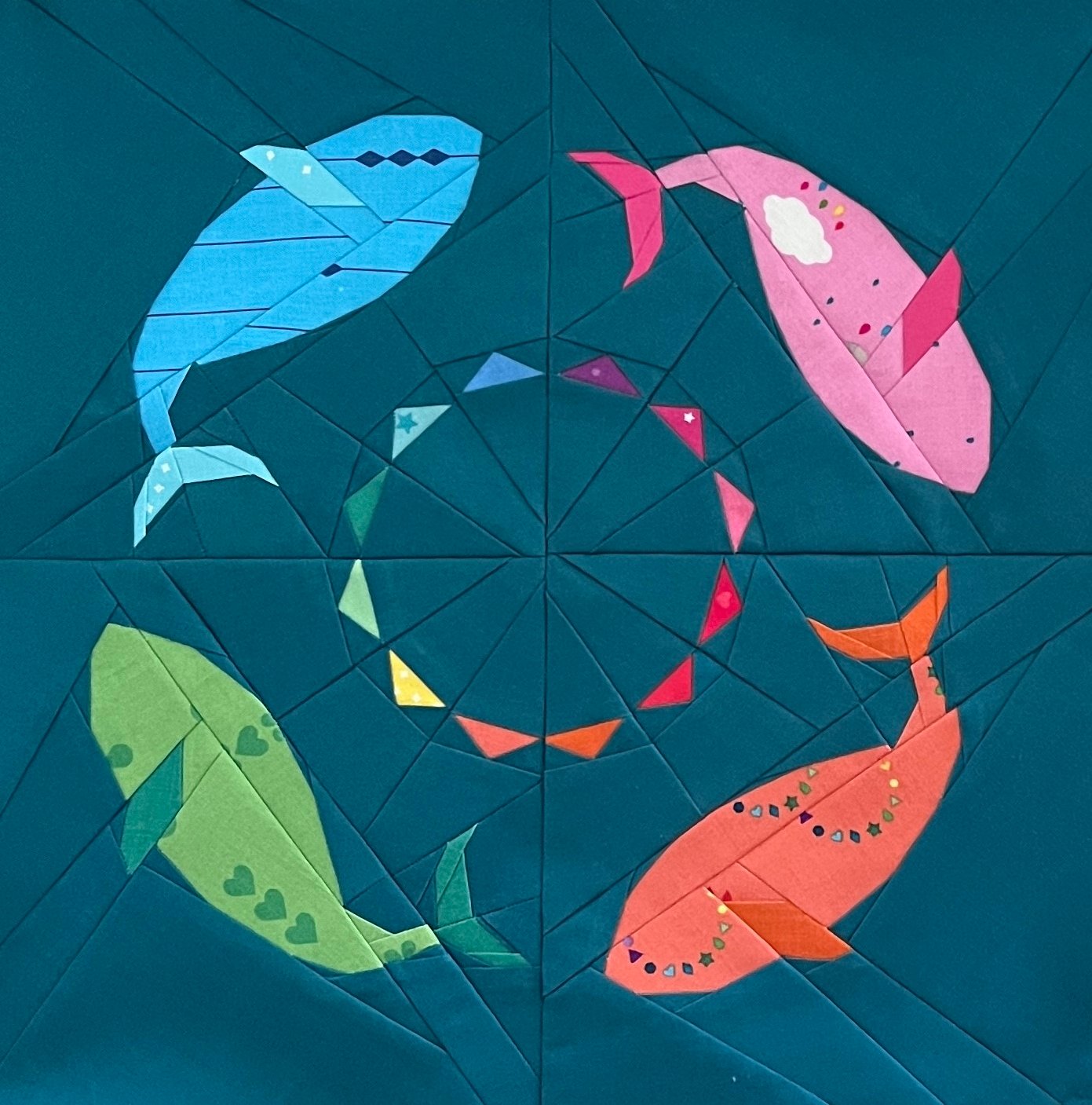 The pattern comes in two sizes - 12" and 15" so you have options on the size you'd like to make It is a foundation pieced pattern. It was originally released as part of the 2023 Under the Sea Pattern Club and now available as a standalone pattern. Or you can find the full collection of Under the Sea by clicking here.