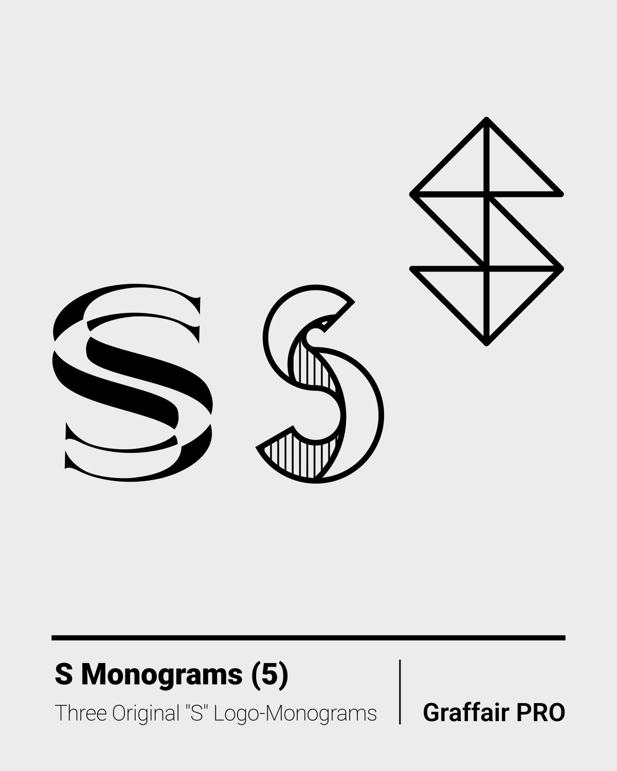S Monograms (5): The 5th set of three original "S" logo monograms, included in the "1050 SVG Monograms" super bundle, which also features an Index catalog.