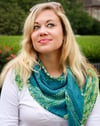 Lacy shawls are great for spring, but when the temperature drops, you need something a bit heavier. Worked in DK weight yarn, this asymmetrical triangle shawl mixes simple stockinette and garter with a clever slipped stitch pattern. The result is a warm, colorful accessory that’s fun to knit and quick to finish. Try pairing a solid main color with a solid, variegated or gradient contrast color.