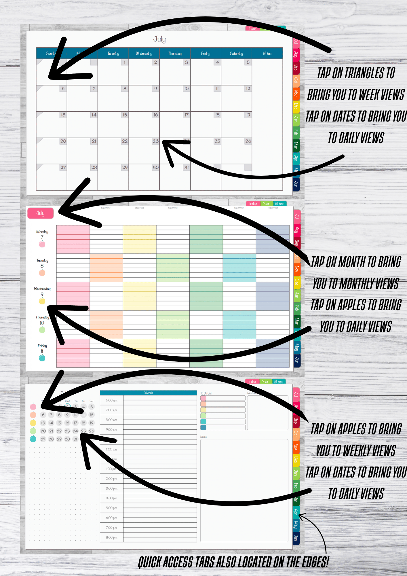 • The text and colors in the planner are not editable or changeable. You may add your own additional text, markings, stickers, etc via your note-taking app.