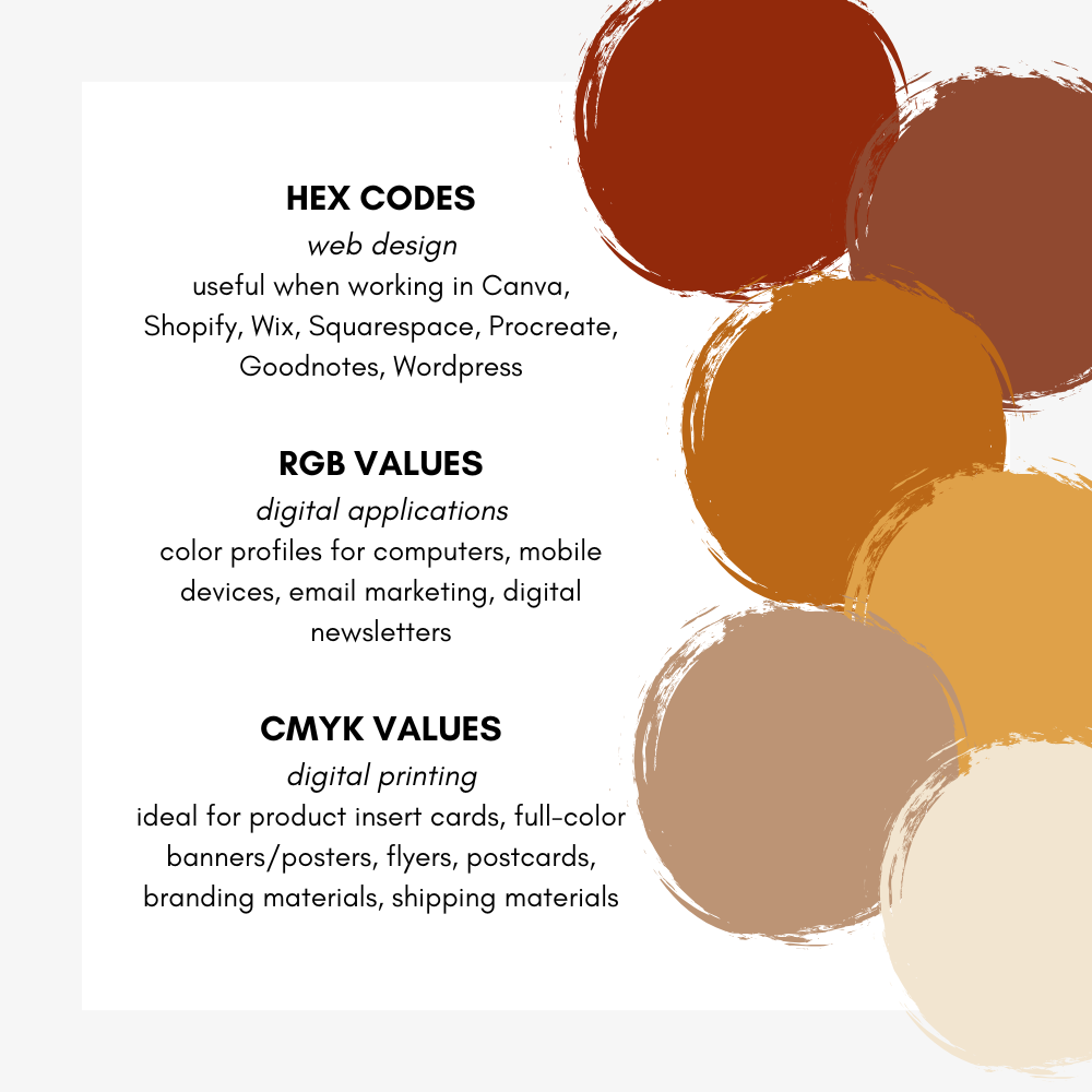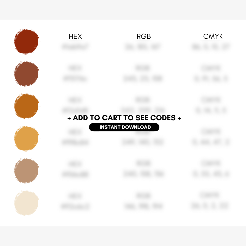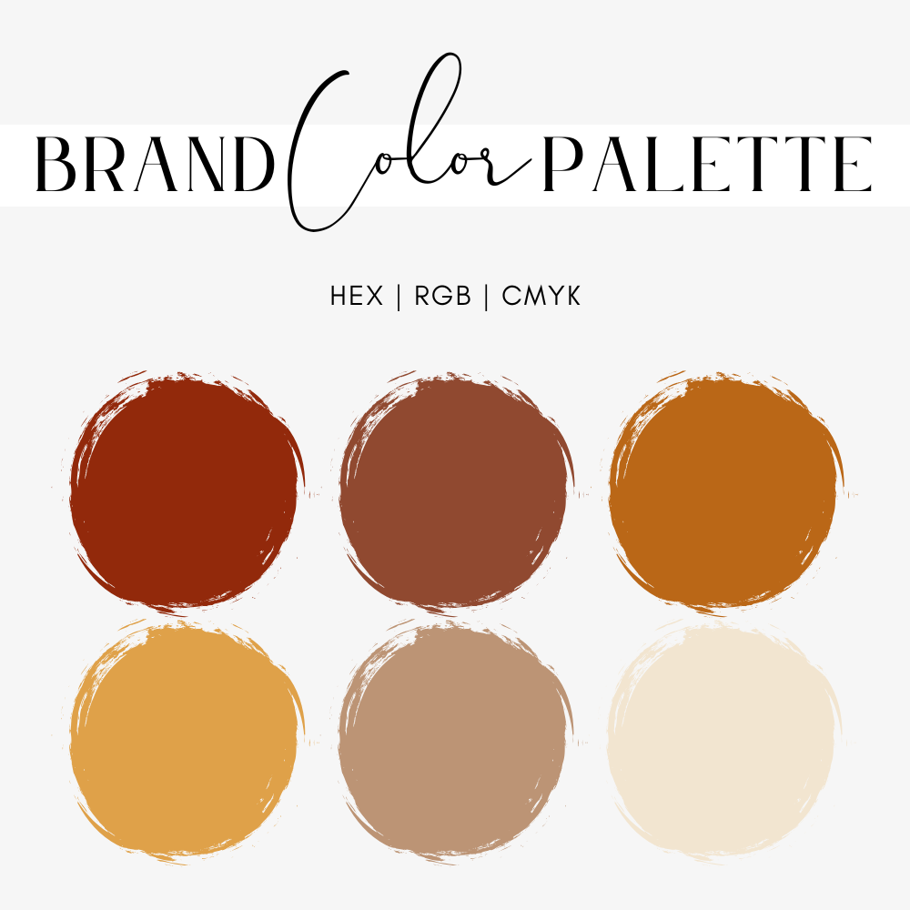 Bring a little bit of cozy to your small business's autumn branding with our Pumpkin Spice Color Palette! Perfect for Etsy sellers and DIY designers, this branding package features a selection of fall brand colors to elevate your website color scheme, marketing materials, and social media. Our palette includes Hex Codes, RGB, and CMYK values, ensuring a cohesive look for all of your business needs. Whether you're using Canva or another design tool, our autumn-inspired hues are perfect for creating a cozy and inviting atmosphere. Download instantly and give your brand the warm, festive feel it deserves for the fall season. Embrace the spirit of autumn with our beautifully crafted color palette!