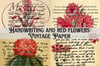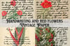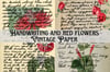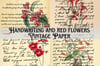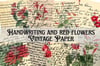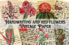 Handwriting, and red flowers Vintage Paper, Handwriting and red flowers Digital Paper, Handwriting, wildflowers Vintage Paper, Handwriting, and Floral Background.