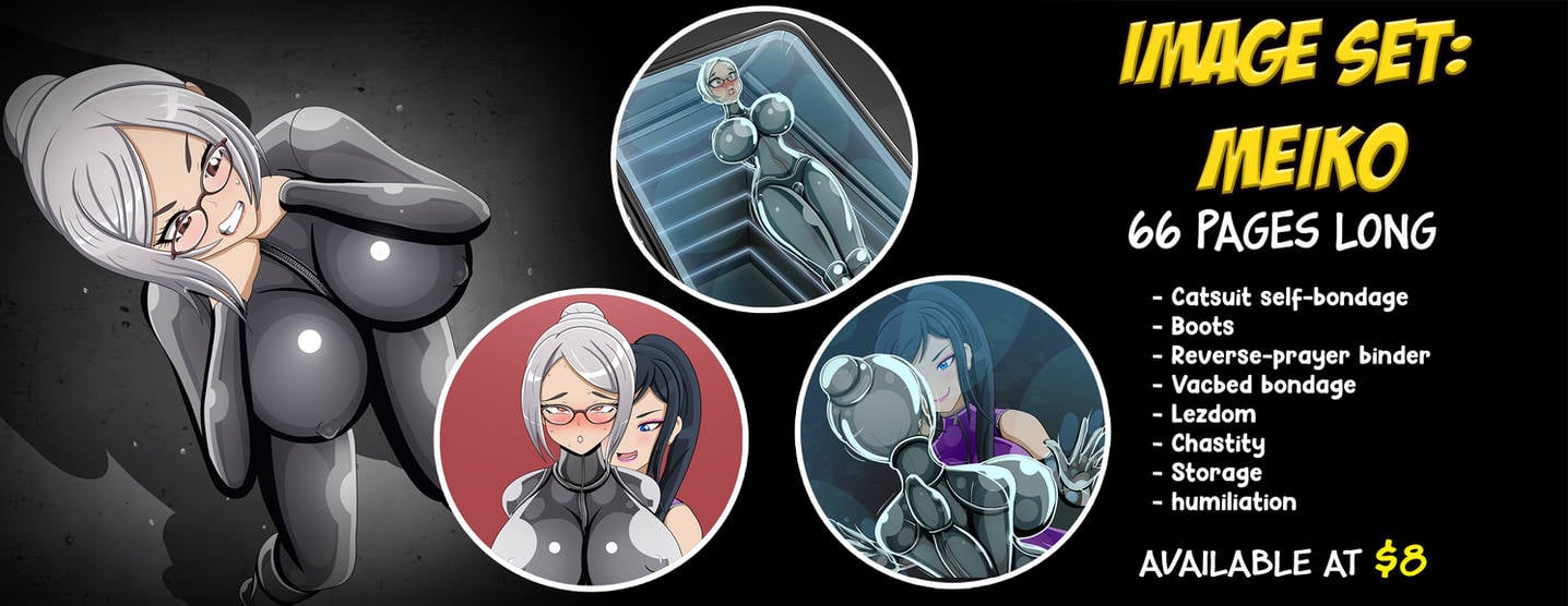 This takes place as spin-off after Meiko finds herself stuck in her sexy catsuit. But this time, she passes out and the "President" finds her. Disappointed, the president decides that Meiko is not fit for her current position. And propose a more permanent position by her side that involves a lot of intense bondage and latex.