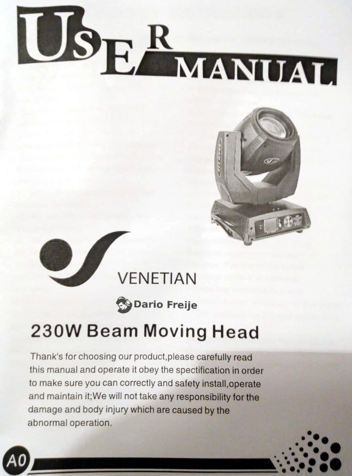 Librería para Freestyler DMX del Cabezal Móvil "Beam 230" de Venetian (7R).
