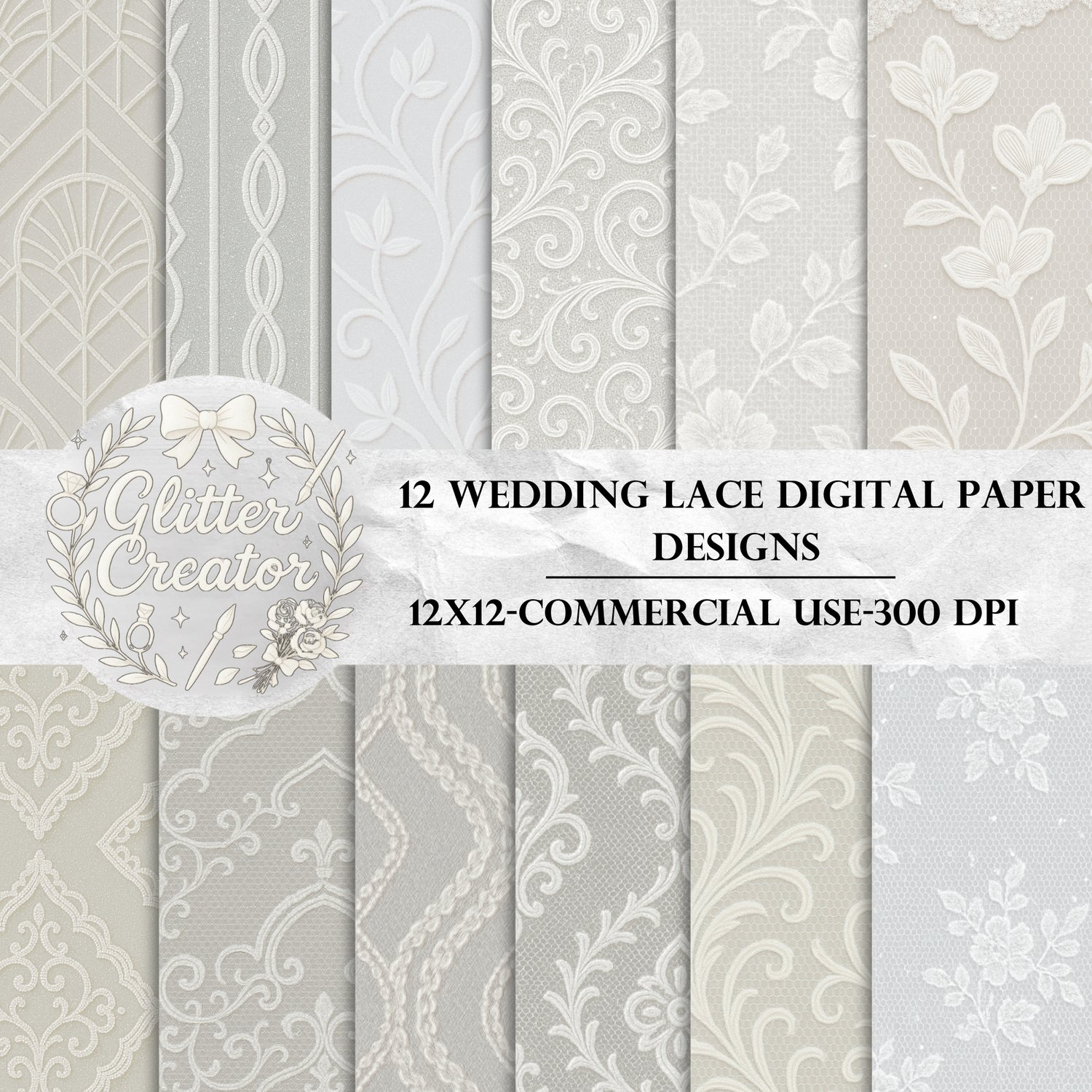 White Wedding Lace Seamless Design Digital Paper Pack|