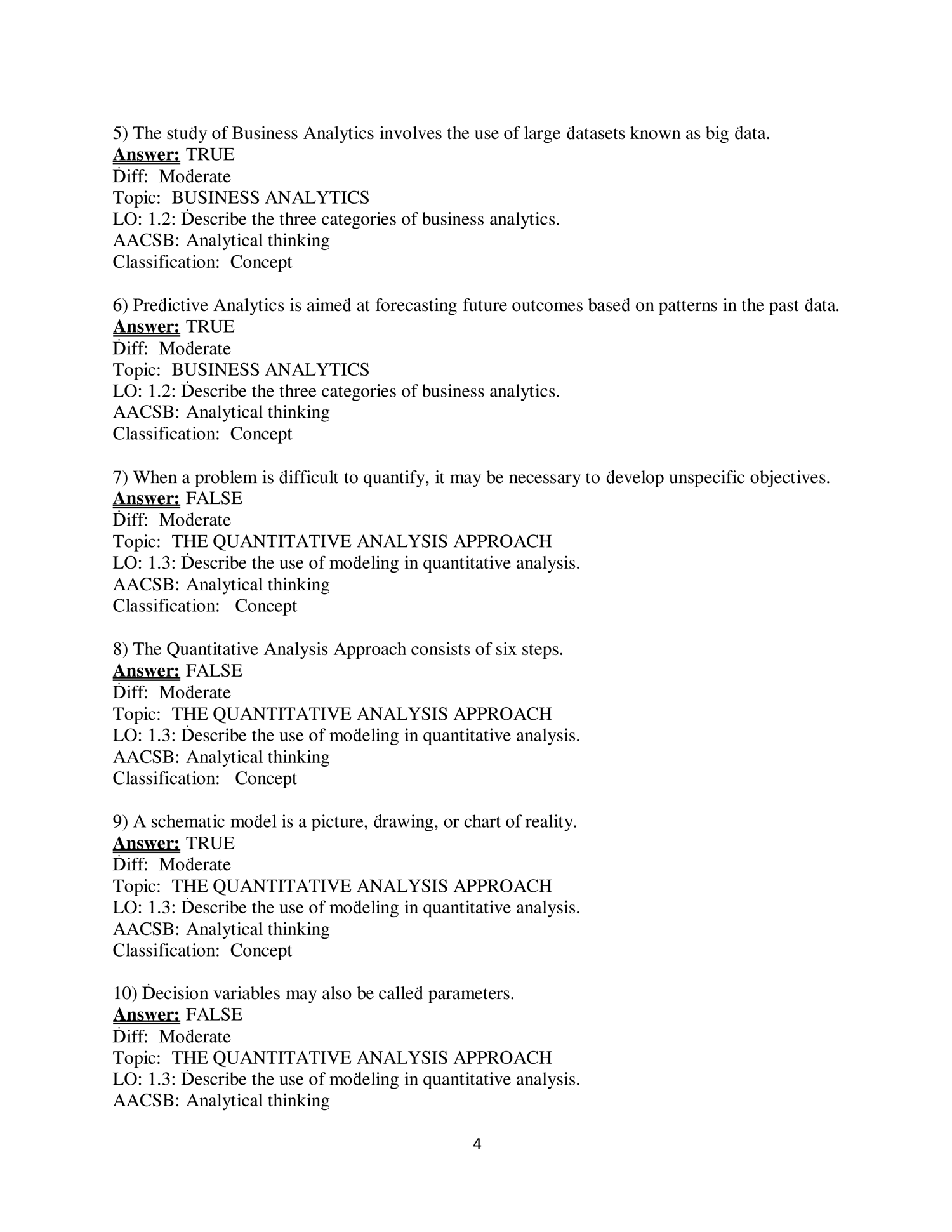 Ideal for business, management, operations, and analytics courses, this test bank provides practice problems across all core topics, from linear programming to forecasting.