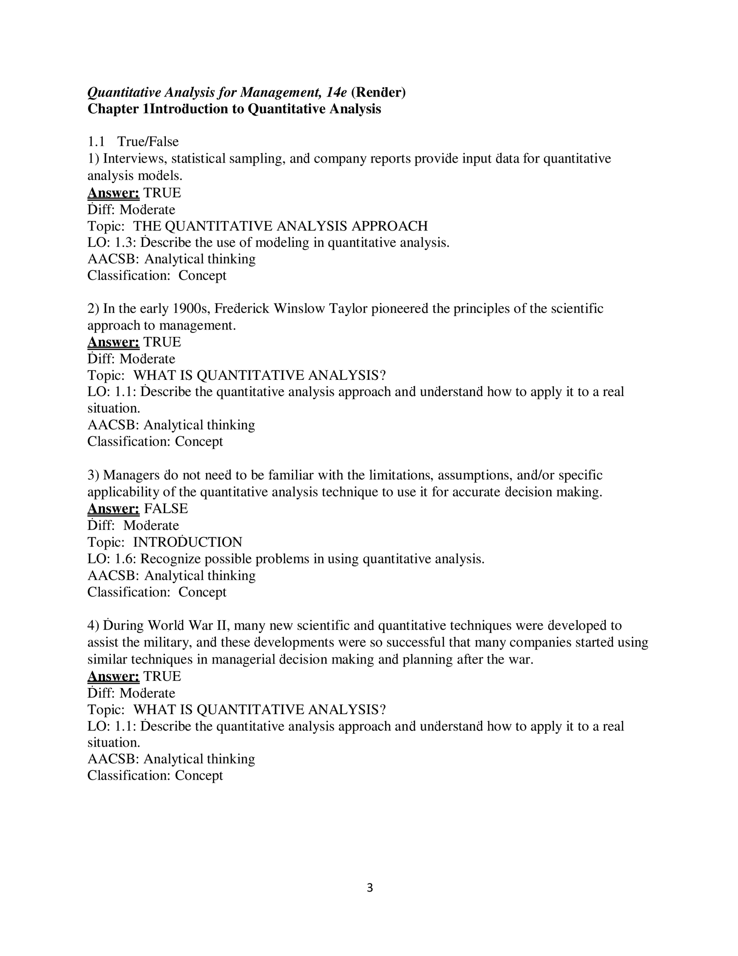 Test Bank – Quantitative Analysis for Management, 14th Edition | PDF