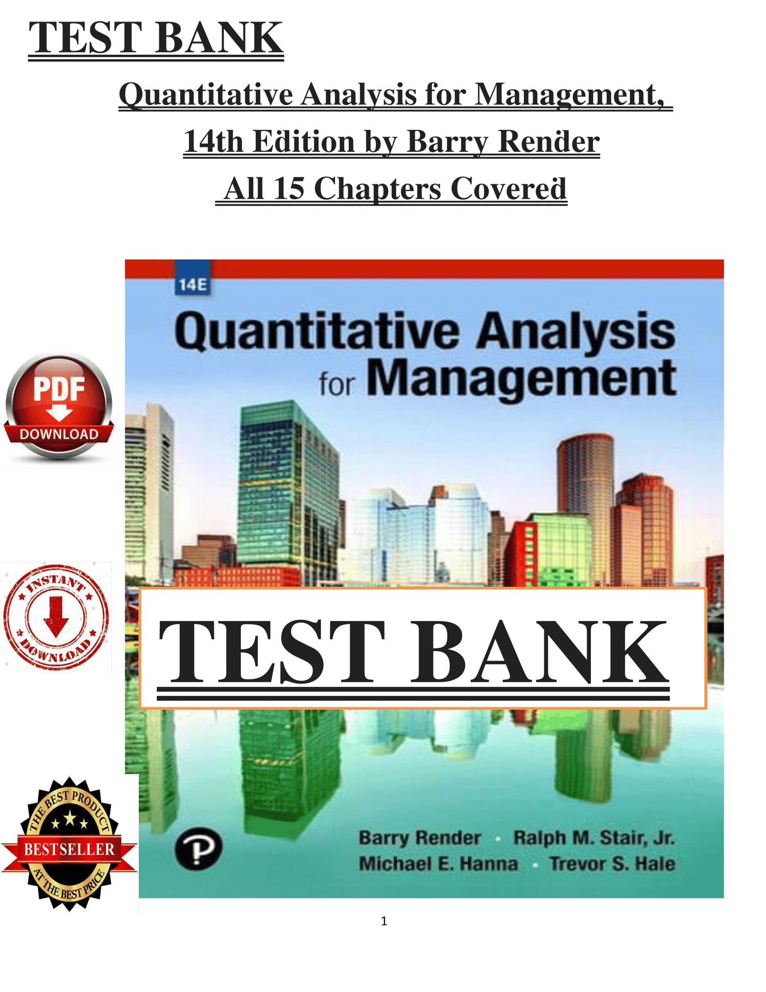Get the complete Test Bank for Quantitative Analysis for Management, 14th Edition by Barry Render, Ralph M. Stair, Michael E. Hanna, and Trevor S. Hale. This resource includes all 15 chapters with exam-style questions and solutions, helping students and instructors master quantitative decision-making techniques.