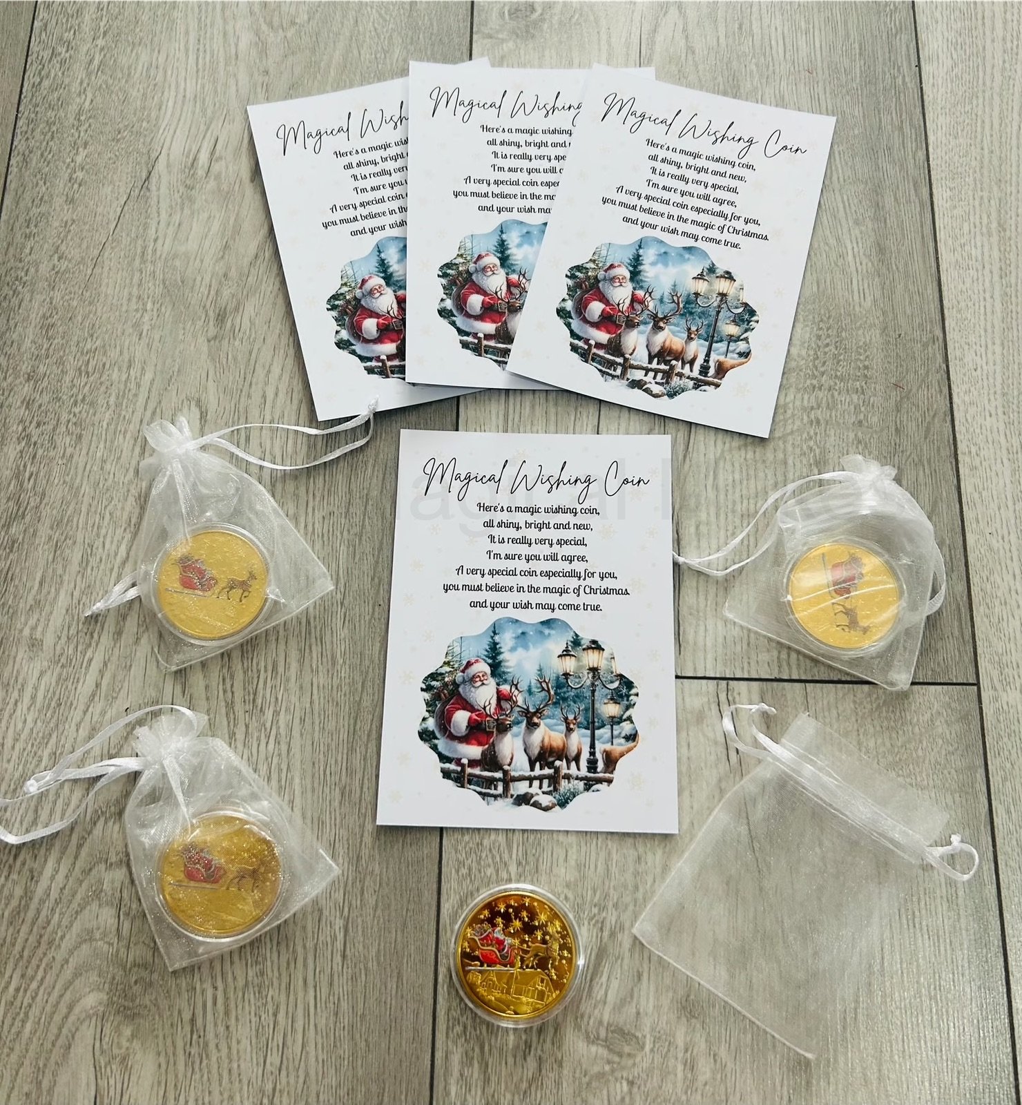Santa Wishing Coin. A6 in size. Santas wishing coin comes with its very own case. Coin is larger than a £2 coin and heavy to give a realistic wishing coin feel.