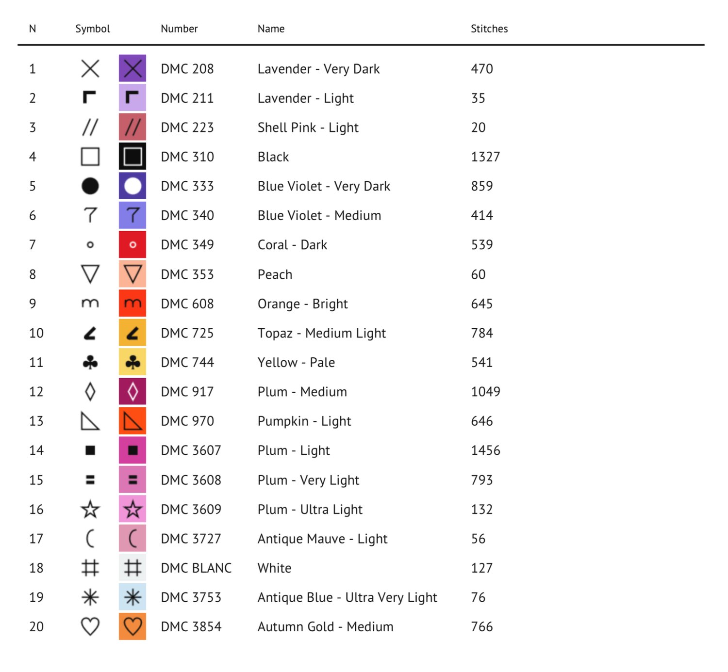 See second image for thread colors.