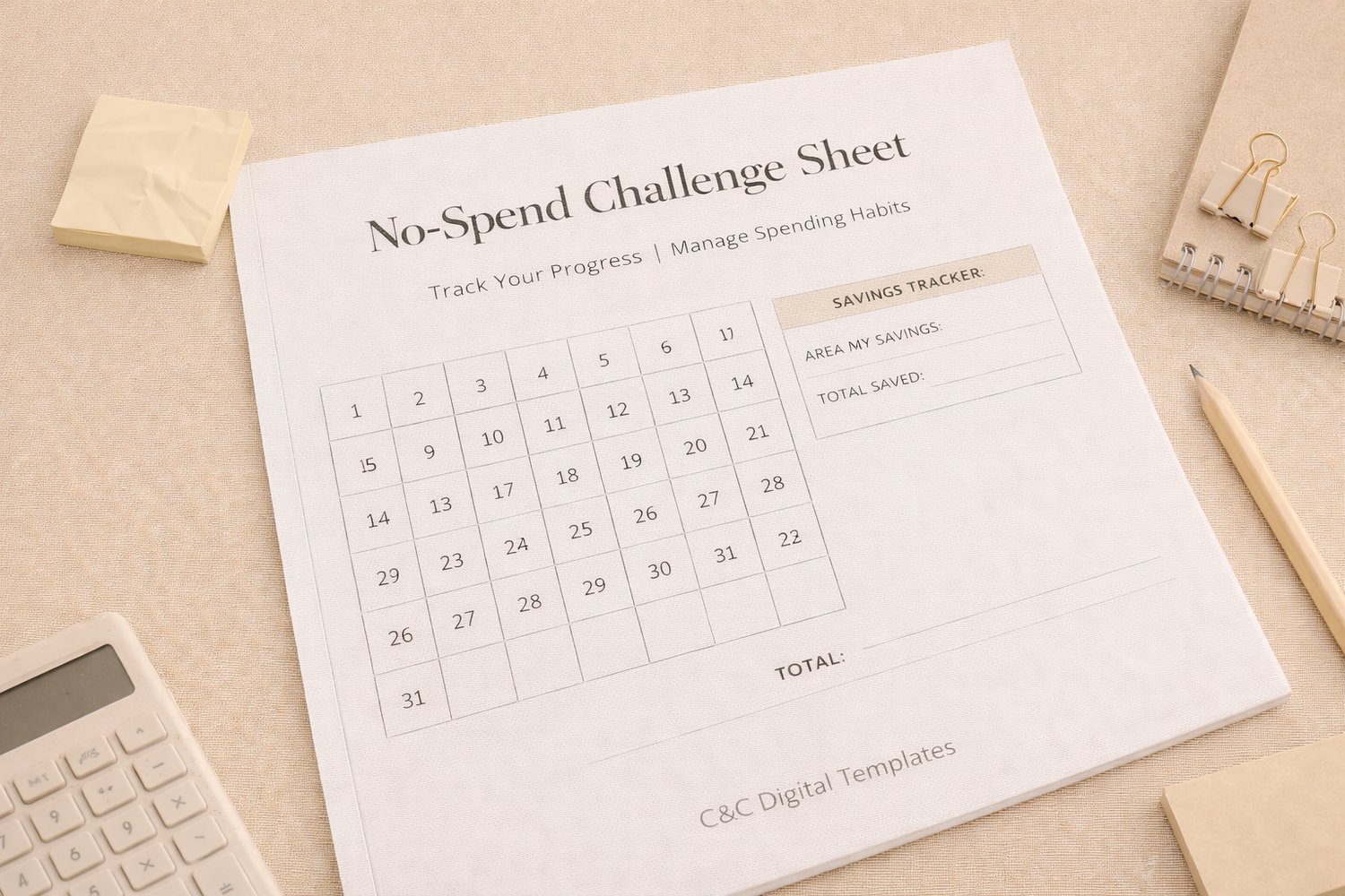 No-Spend Challenge Sheet – Simple Money Habit Tracker | Finance Planner