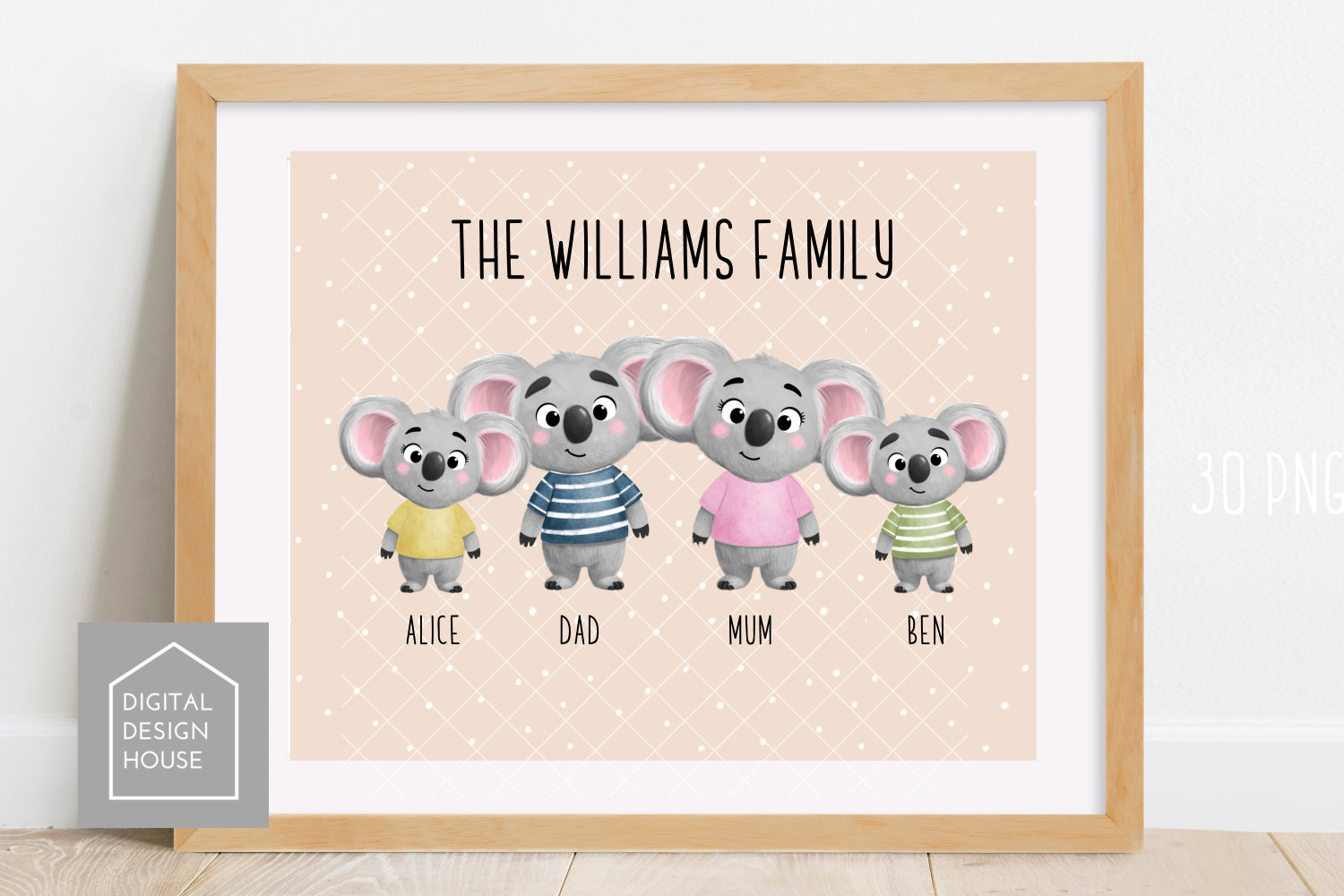 Create adorable personalised gifts and prints with this Cute Koala Family PNG Bundle 🐨💛This versatile clipart set features sweet koalas, perfect for building custom families, greeting cards, baby announcements, mugs, cushions, wall art, and more.