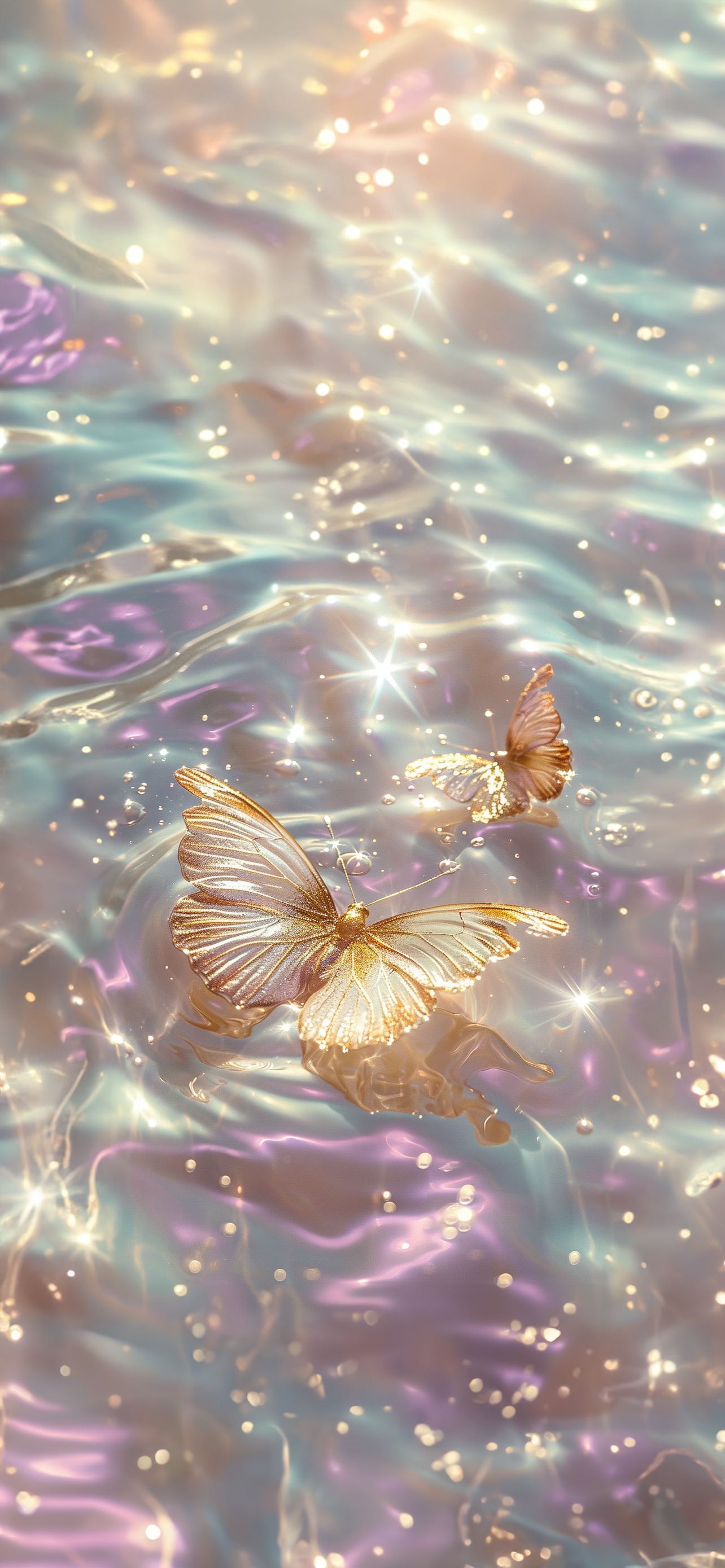 Infuse your phone with the serene beauty of nature. Download the Golden Butterflies on Shimmering Water Wallpaper Pack today and let your screen glow with elegance and peace!