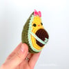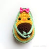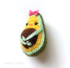 The Pregnant Avocado is a cheerful avocado half who cradles her belly bump (the seed) as she patiently awaits the birth of her precious baby! This clever amigurumi design makes a cute gift for any expecting mom with a bun in the oven, or to use as a creative pregnancy announcement prop! It is a relatively quick and easy crochet project that requires some sewing and adding details. You can easily customize this avocado by using different appliques or embellishments. The PDF pattern includes instructions to guide you through the entire project and includes numerous photo references with clear, written instructions.