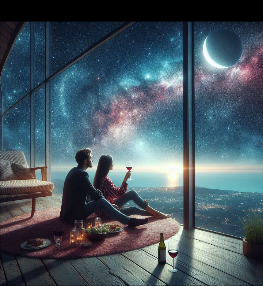 The moon at night has a sense of mystery! Especially with the one you love! The two of them tasted fine wine and watched the bright moonlight, which was very poetic and picturesque! In this romantic night, silence is better than sound! We must be grateful! God has created a beautiful natural world so that everyone can live comfortably on a warm earth with stars day and night, where they can work and rest! So it’s everyone’s responsibility to protect the earth!
