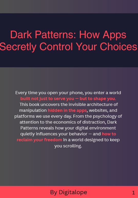 Dark Patterns is an eye-opening ebook that uncovers the hidden tricks apps and websites use to influence your behavior. From sneaky “free trials” that turn into subscriptions, to endless scrolls that hijack your attention, this book reveals the invisible psychology that controls the modern internet.