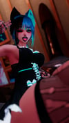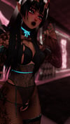 She has a cute but dark aesthetic to her, both succubus and angel depending on what you prefer!!