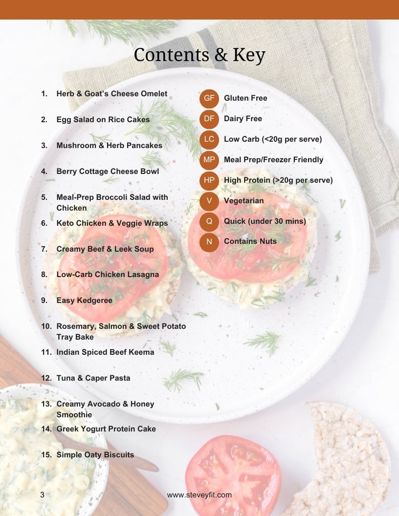 15 healthy and simple recipes for breakfast, lunch dinner and snacks.