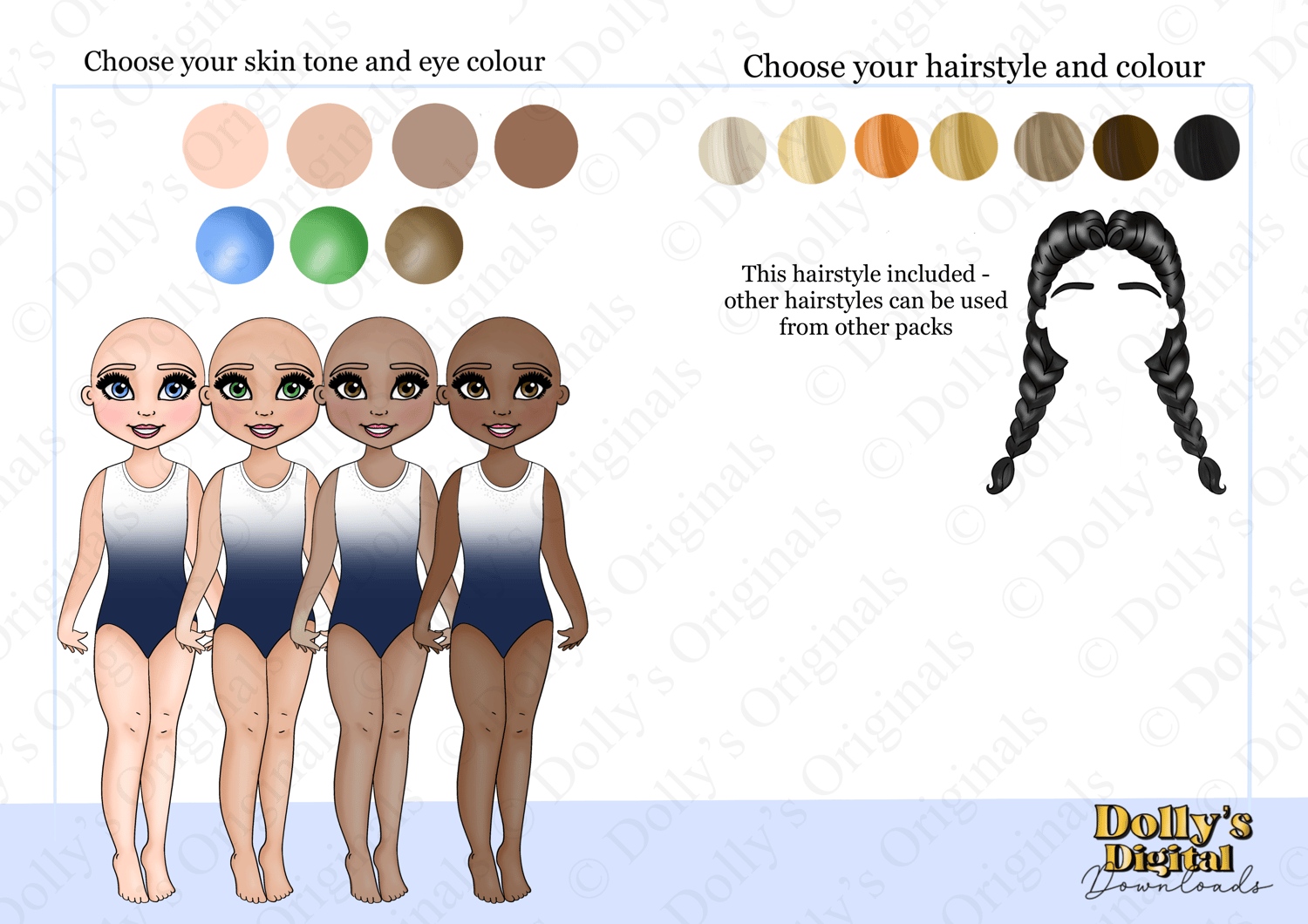 Instant digital download of our Navy and White Leotard Gymnast Character Bundle PNG (17 PNG’s)