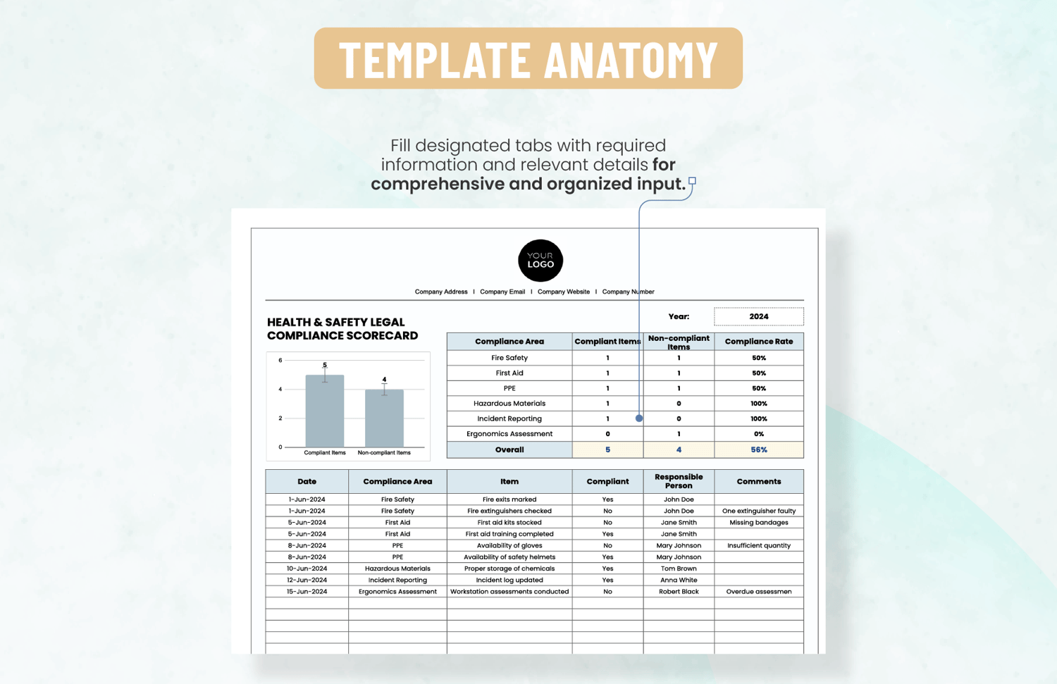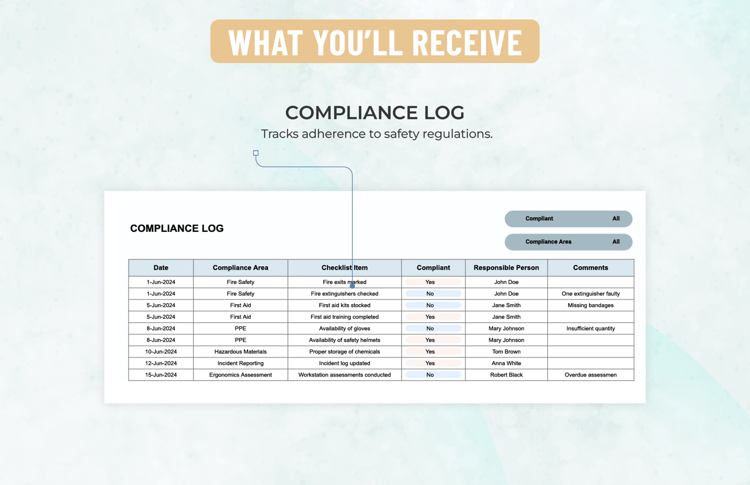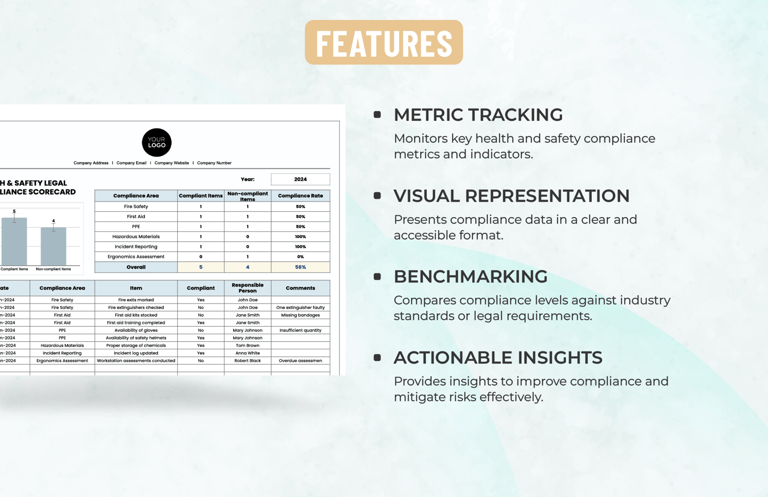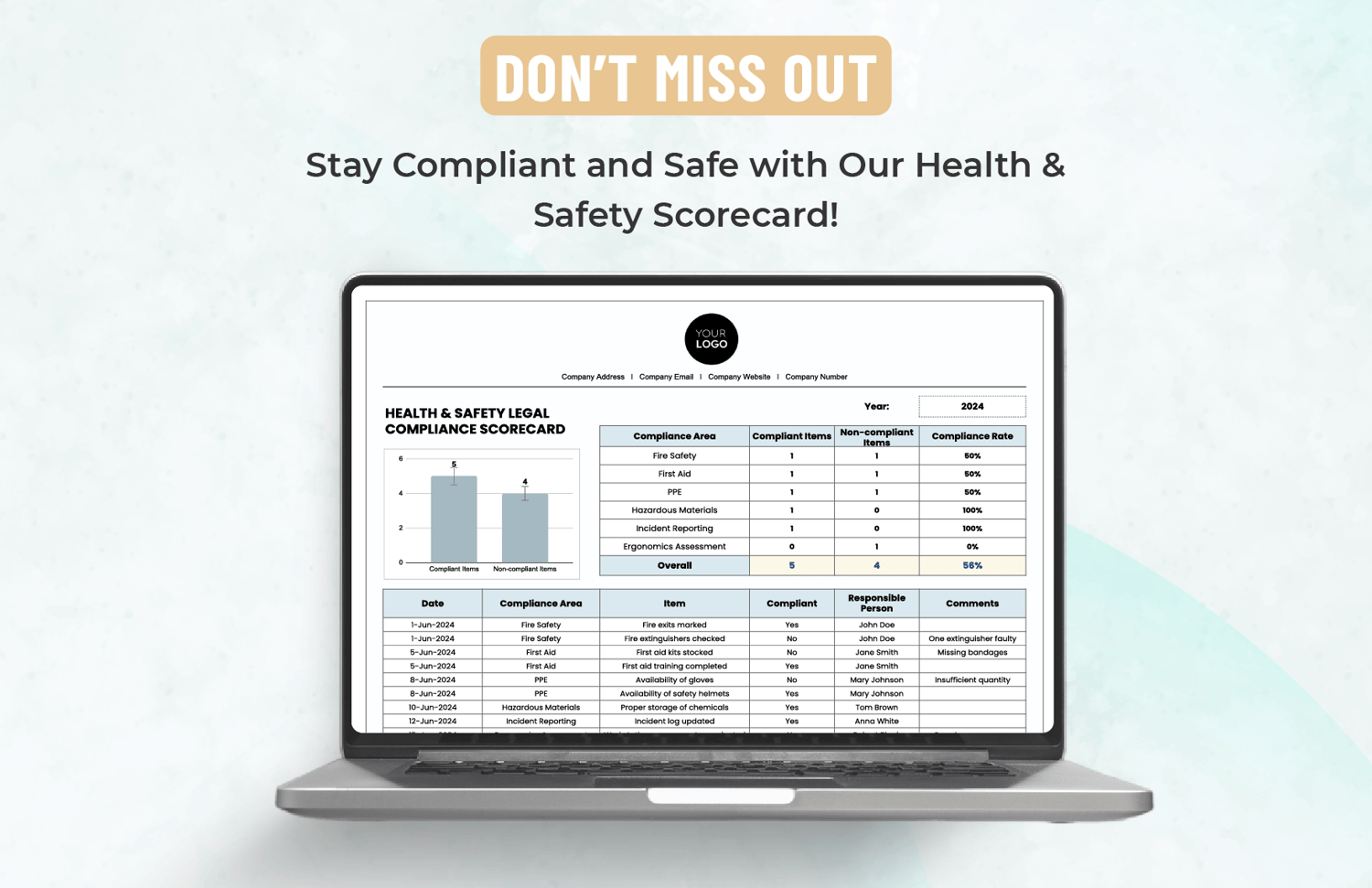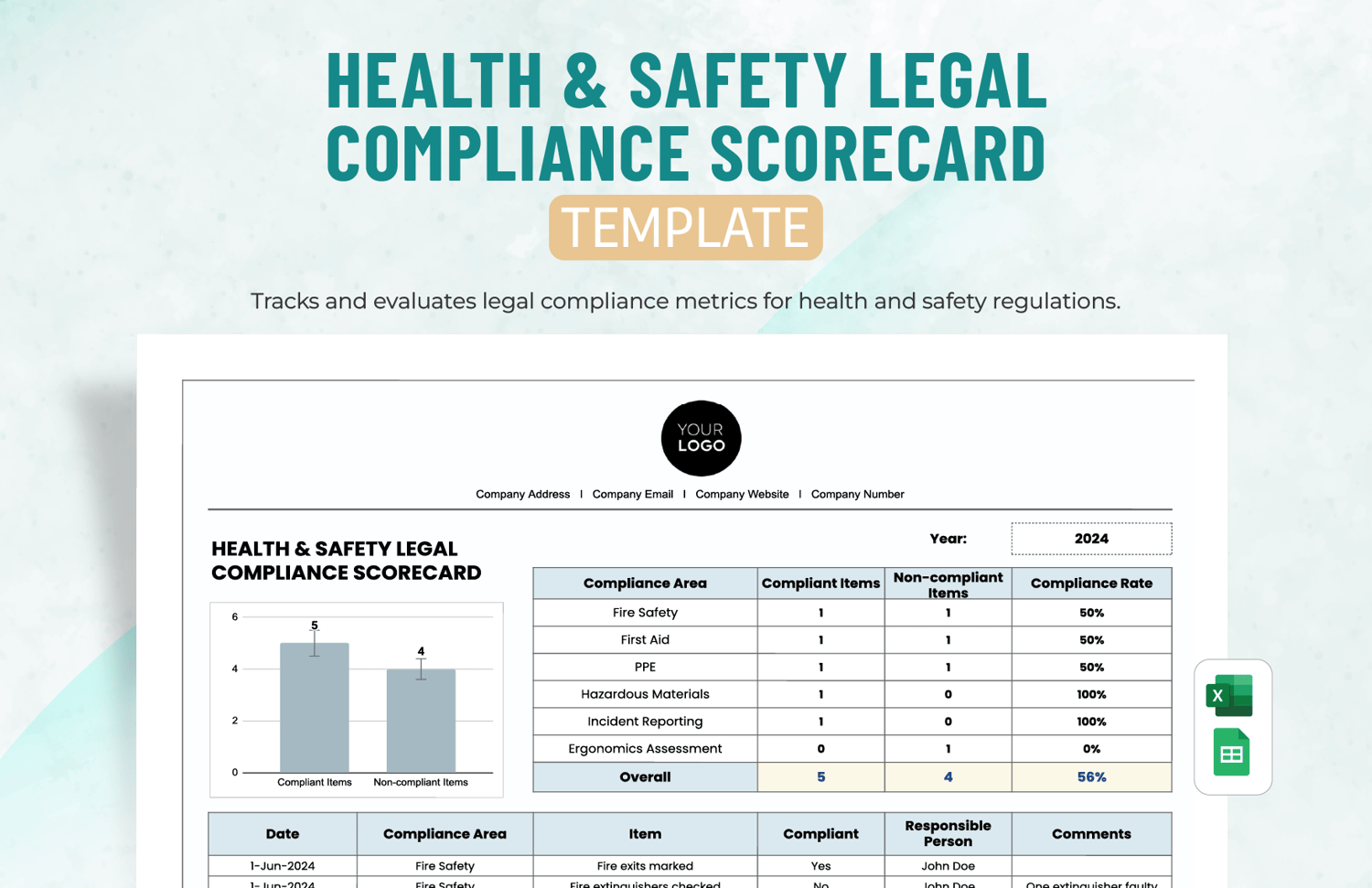 This Excel dashboard helps you track and monitor Health, Safety, and Legal compliance in one place.