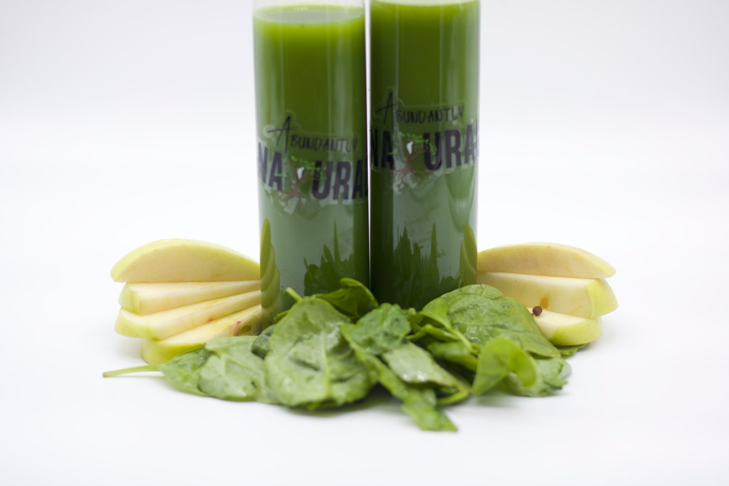 Ingredients: cucumber, kale, spinach, parsley, lemon, green grapes, and green apple.