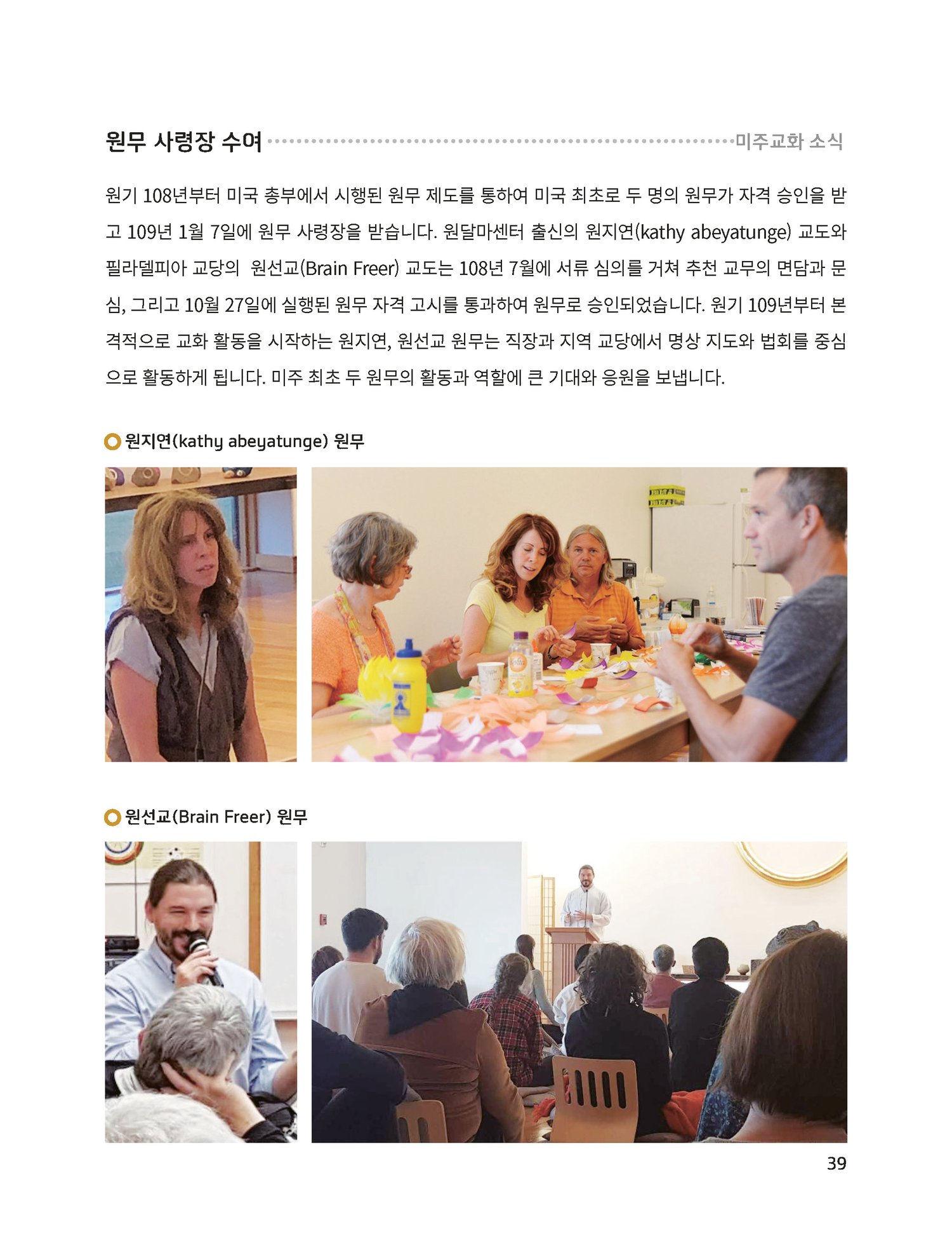 미주원불교 교화단 마음공부 (원기 109년 1, 2월)