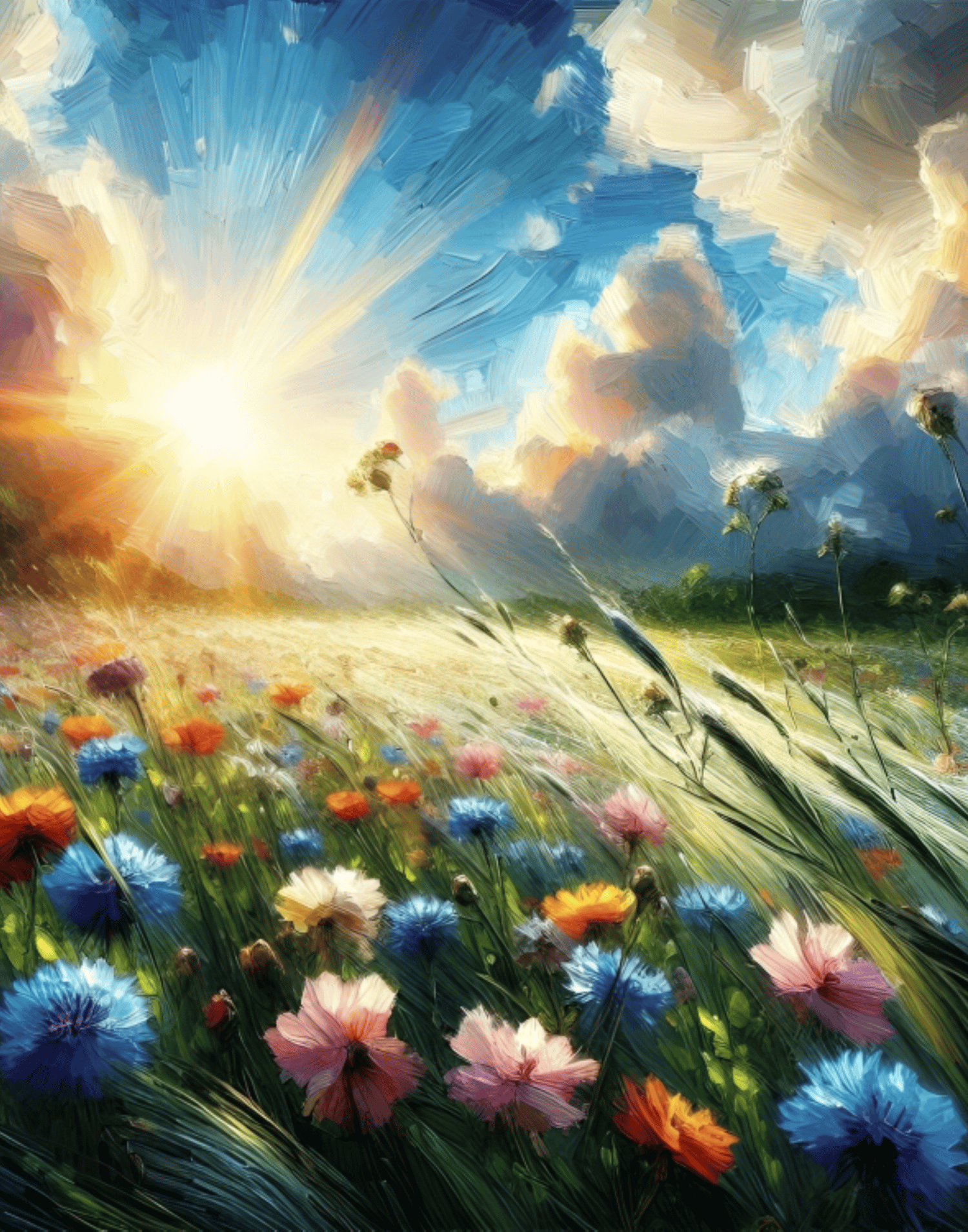 Sunrise, Flower Field, Various Wild Flower, Flower, Wild Flower, Single Rainy Flower, Beautiful Flower, Nature Love, Floral Art, Green Leaf Painting, Environmental Painting, Green Nature Painting, Green Painting, Wild Flower, Flower Beauty, Watercolor Flo