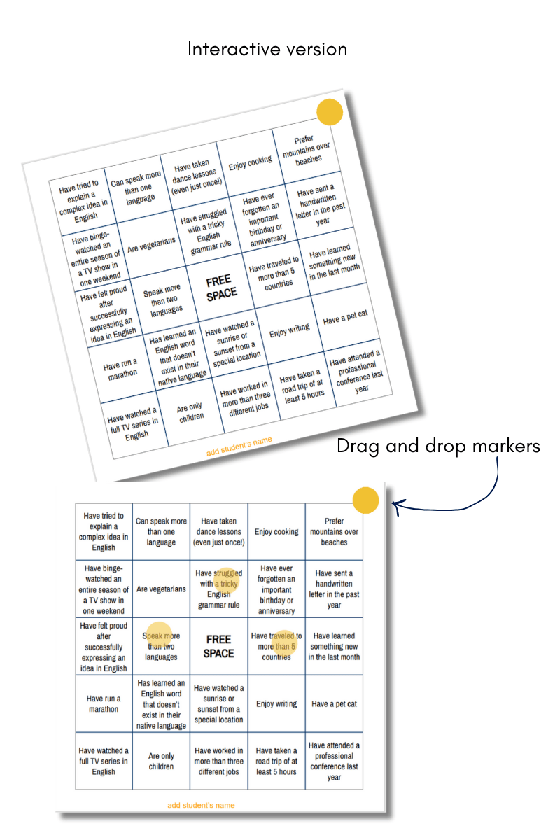 - Great warm-up before lessons on introductions, hobbies, routines, or past experiences