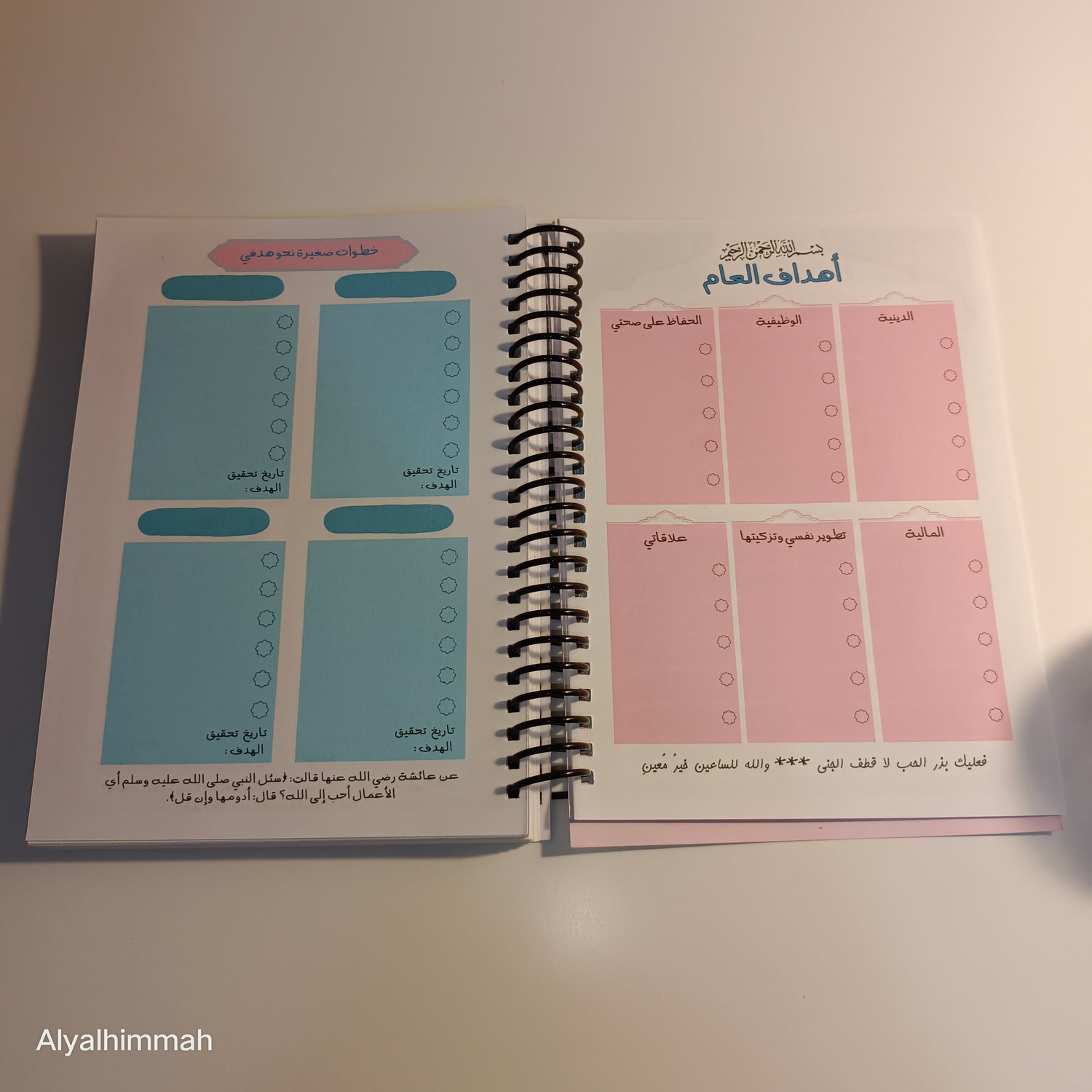 صفحة أهداف العام ( مقسمة لاهداف دينية و وظيفية أو دراسية و صحية و مالية و تطوير النفس و العلاقات ).