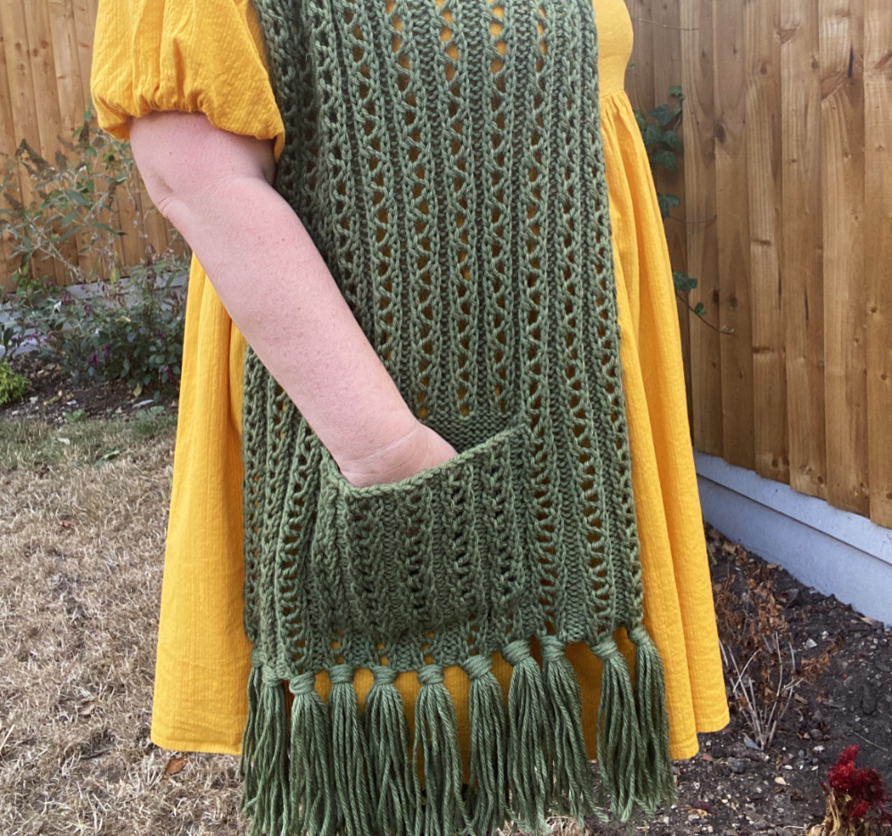 Funaria is a wide lacey scarf that knits up super quick and best of all it has pockets!