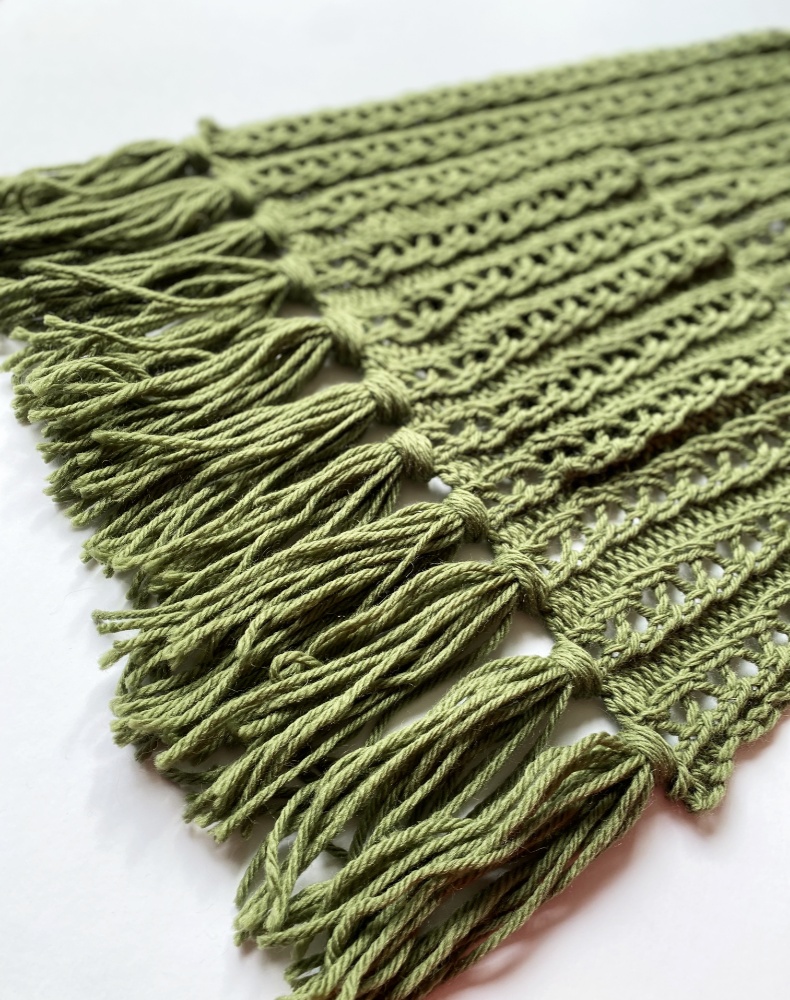 Sample shown is 19” / 48cm wide x 75” / 190cm long (not including tassels)