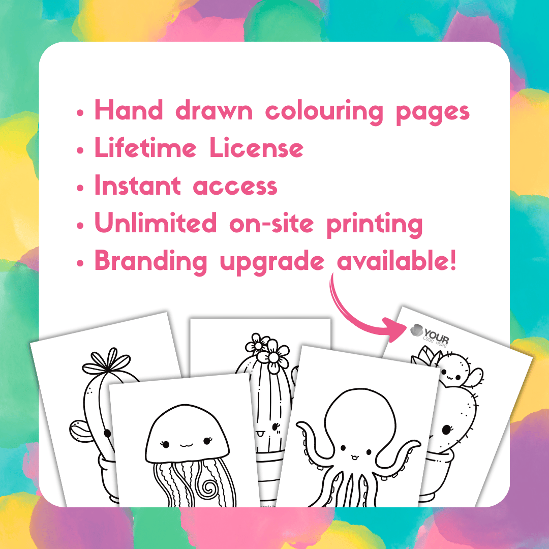 Add the Branding Upgrade and we will apply your logo to the bundle, making sure the line art, logo and licensing information fits neatly on each page. This upgrade allows for one (1) logo to be added to the existing line art colouring page. You will receive the original file of 5 colouring pages directly (with no logo). Please send us your logo via email as a PNG or SVG file. Upgrading your file generally requires 2 business days. Please allow up to 5 business days during busy periods. We will then email your upgraded file with your logo to you as a PDF print ready file.