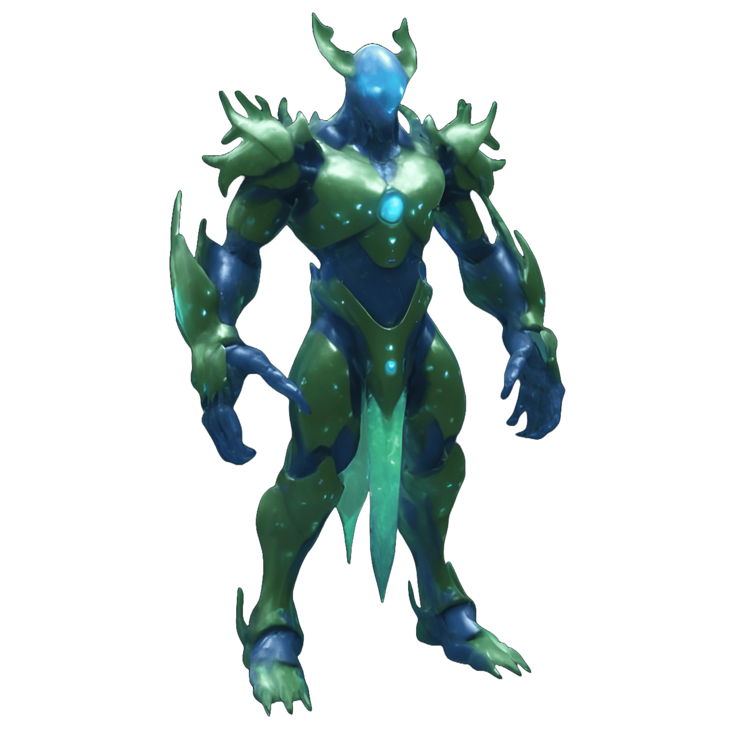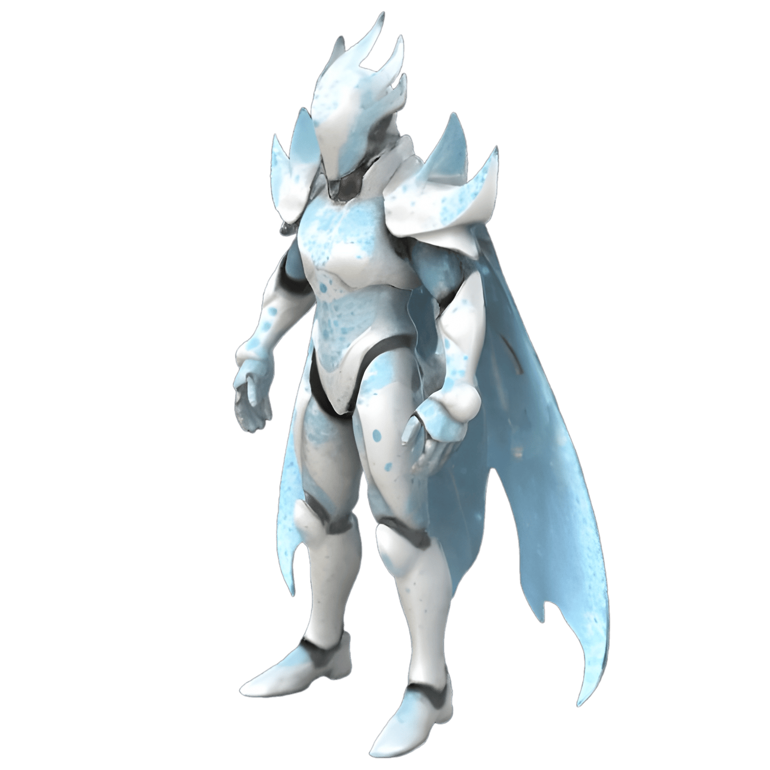 - An elegant ice/crystal warrior with flowing cape and angular armor design