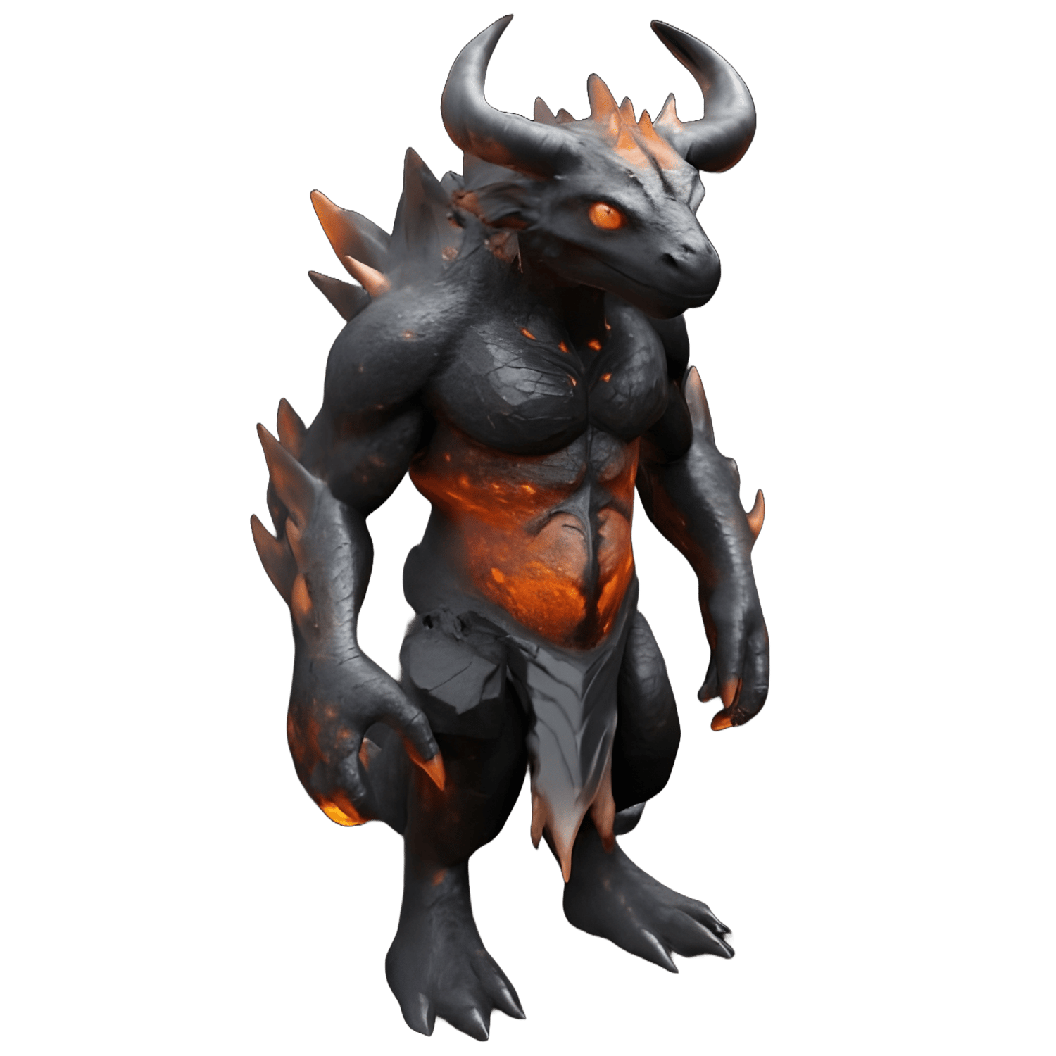 - A fierce dragon-like creature with dark scales and glowing orange accents, perfect for antagonist roles