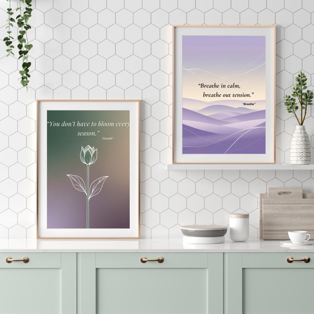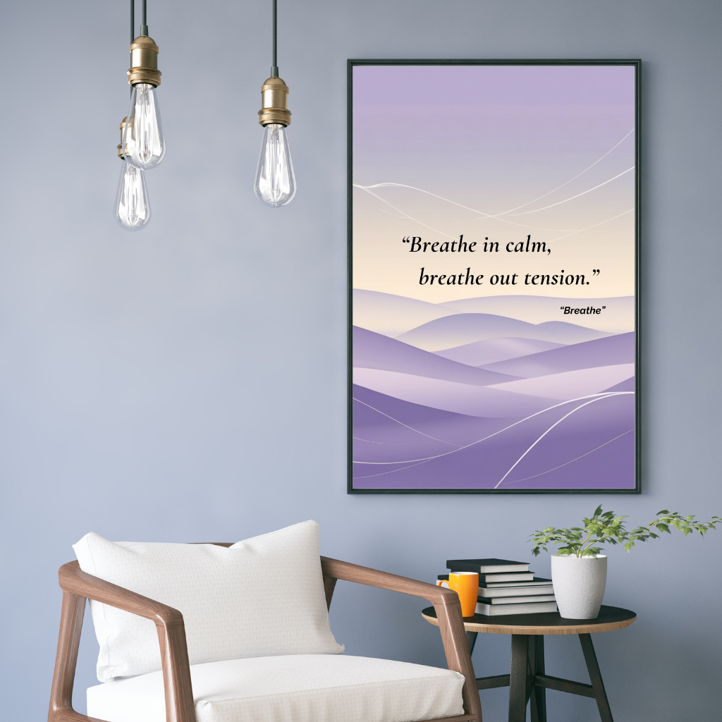 Create space for calm with this soothing digital wall print from SweetBug. Featuring the gentle affirmation “Breathe in calm, breathe out tension,” this artwork is designed to help you ground yourself, release stress, and reconnect with stillness—even in busy moments.