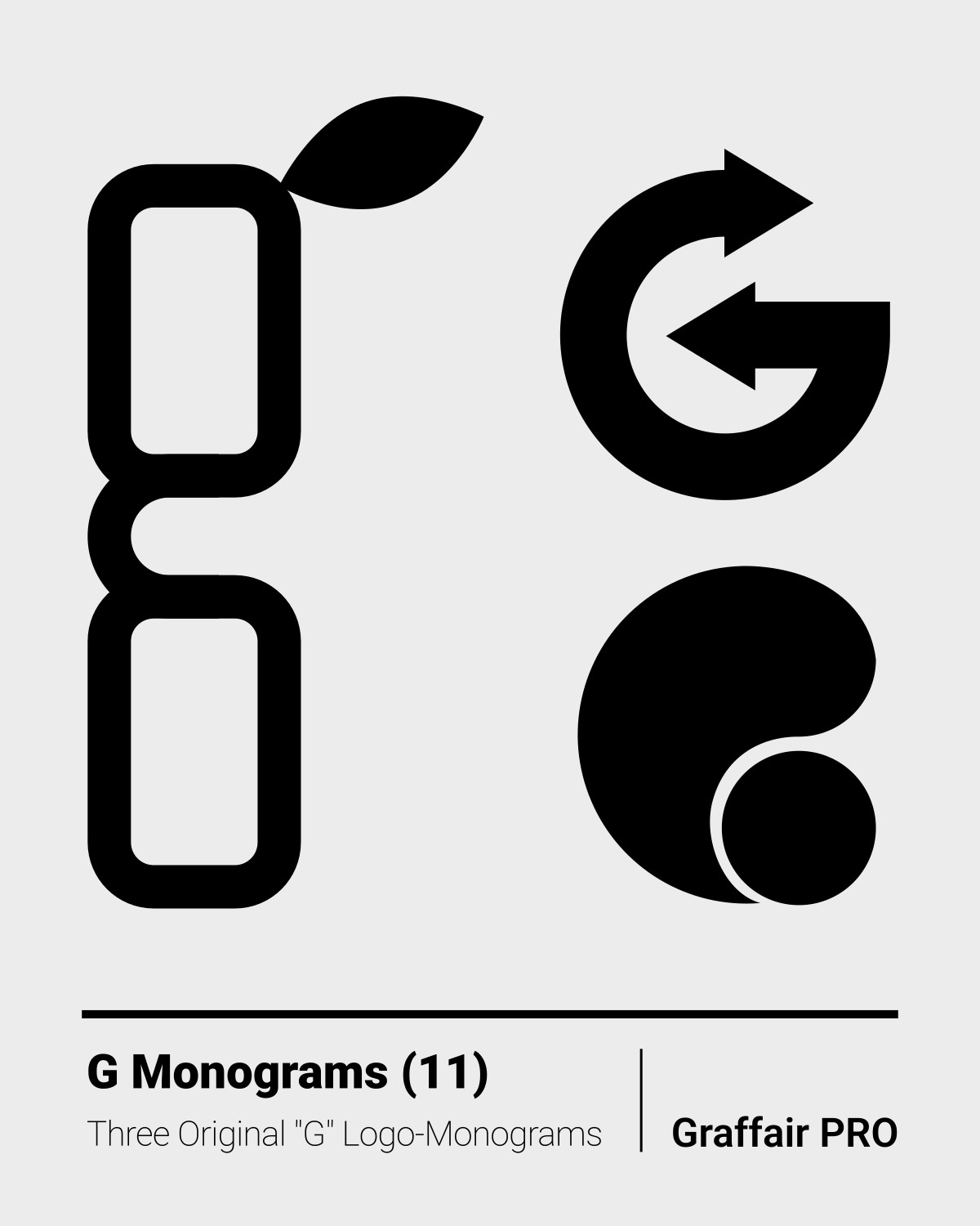 G Monograms (11): The 11th set of three original "G" logo monograms, selected from a total of 33, included in the "1050 SVG Monograms" super package, which also features an Index catalog.