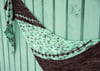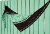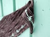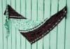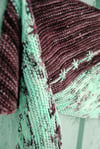 Two contrasting colors and strings of flowers…Pennyflower is made of squishy garter stitch knit into striking color blocks. Series of flower motifs give this simple graphic shawl some visual interest — and an engaging break in between the garter stitch sections. Starting from the upper left corner, the shawl is knit on the bias to create an asymmetric triangle. The flower motifs are knit with knit-below and elongated stitches.