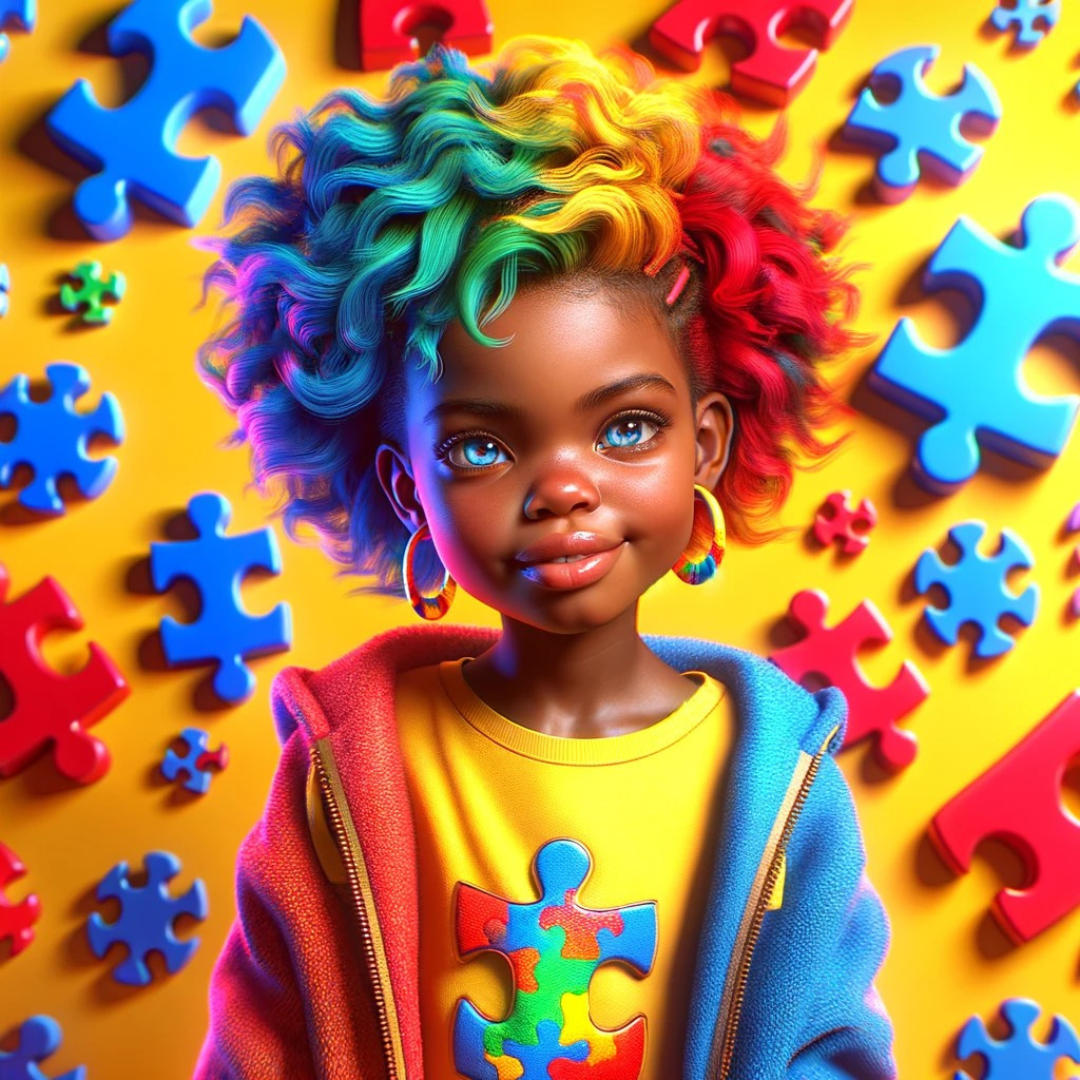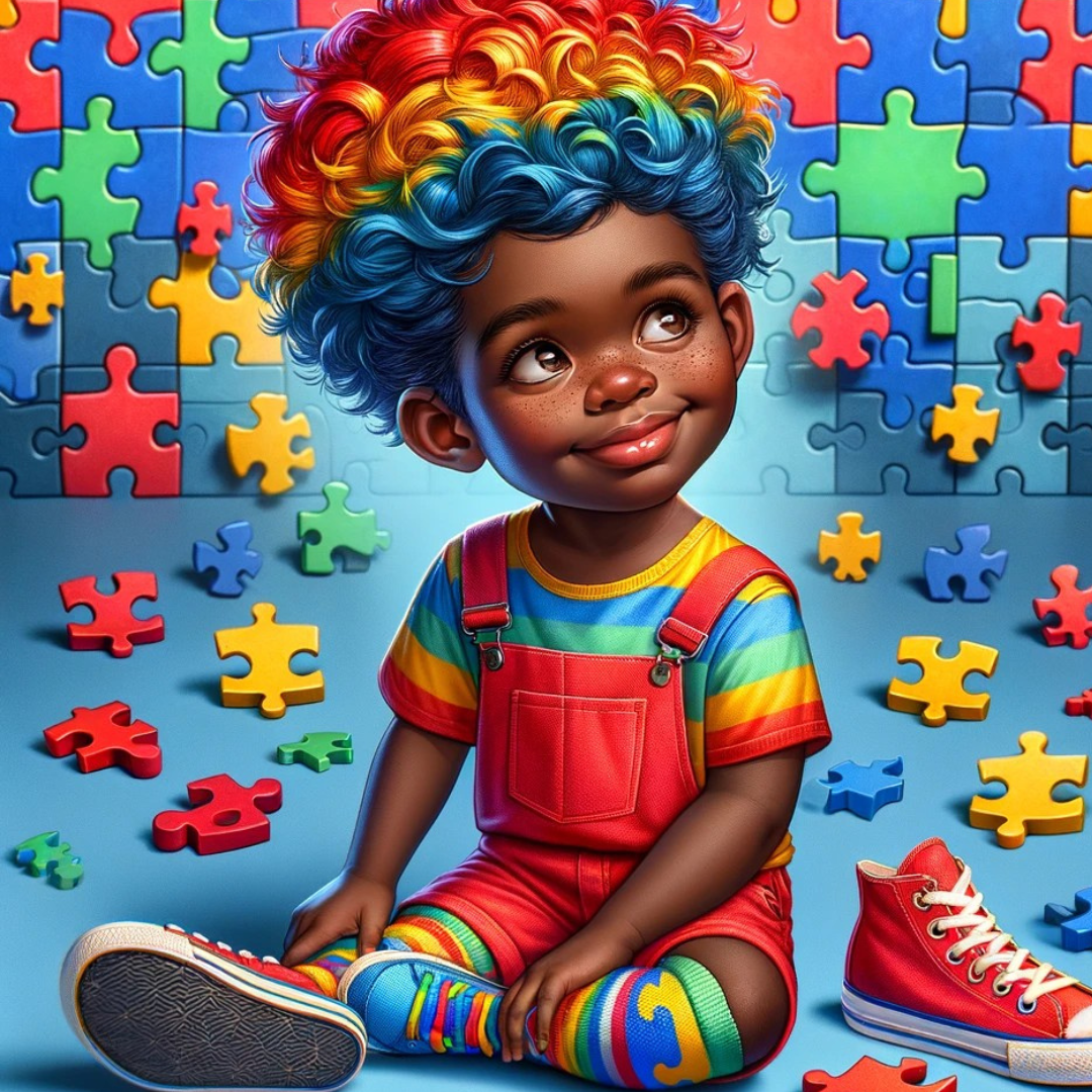 Celebrate neurodiversity with this vibrant 5-piece Afro Kids PNG bundle! These joyful designs feature adorable Black children with colorful rainbow afros styled in puzzle-piece inspired colors, perfect for Autism Awareness Month and year-round inclusion projects. ✊🏽❤️💛💚💙