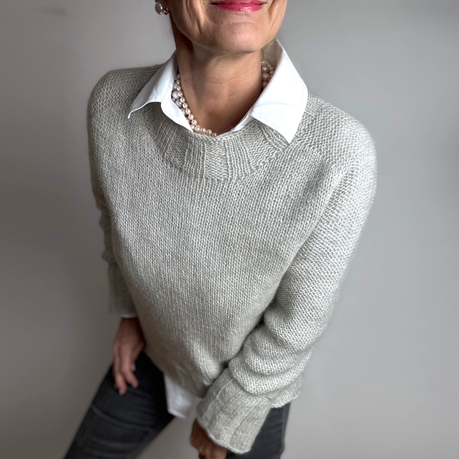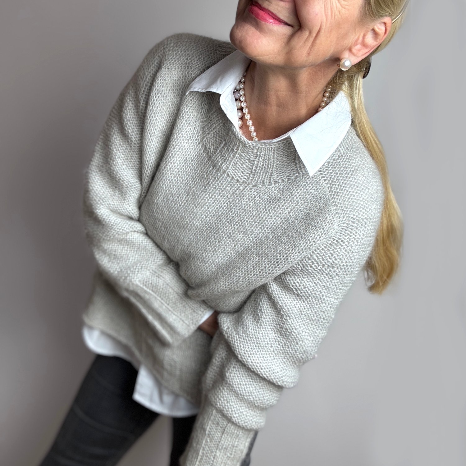 Grey and mauve sample both knit in Drops Alapca (165m/50g), and Kid Silk (210m/25g) held together, size M