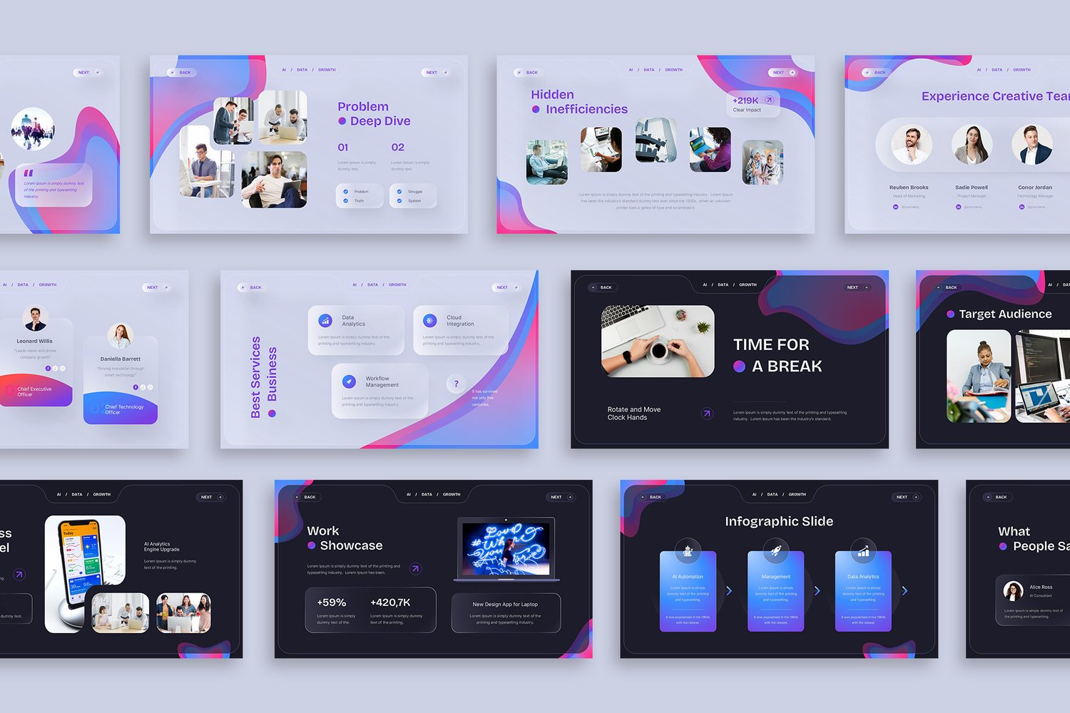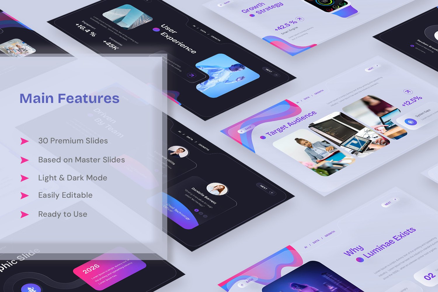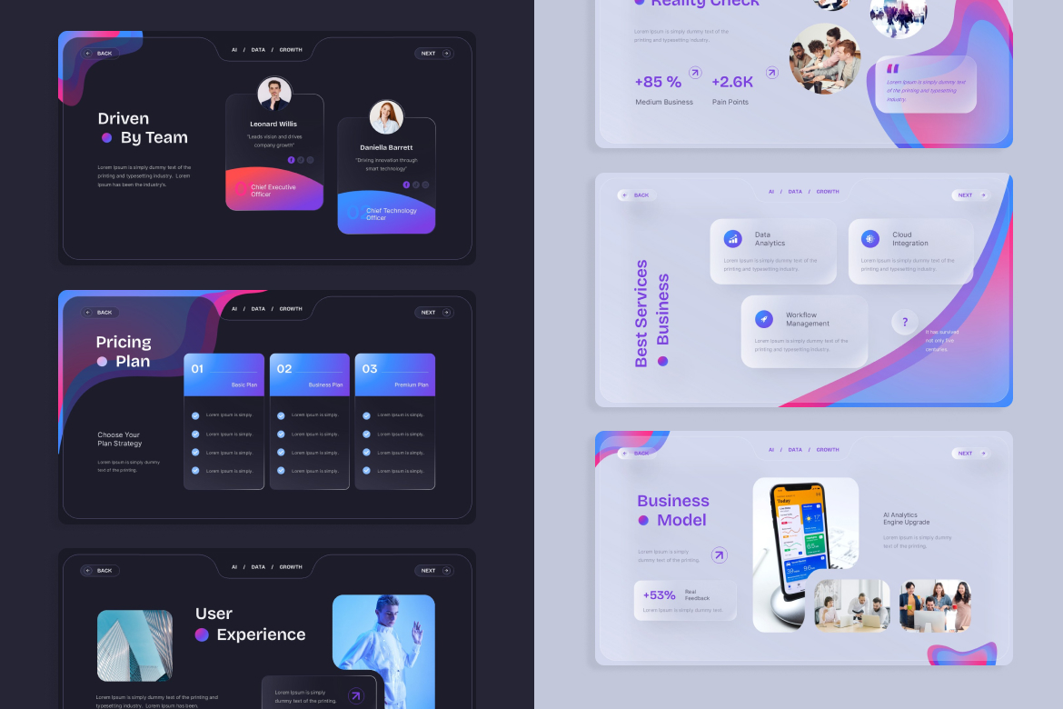 It helps you present ideas, data, and strategy with clarity while maintaining a premium and futuristic visual identity.